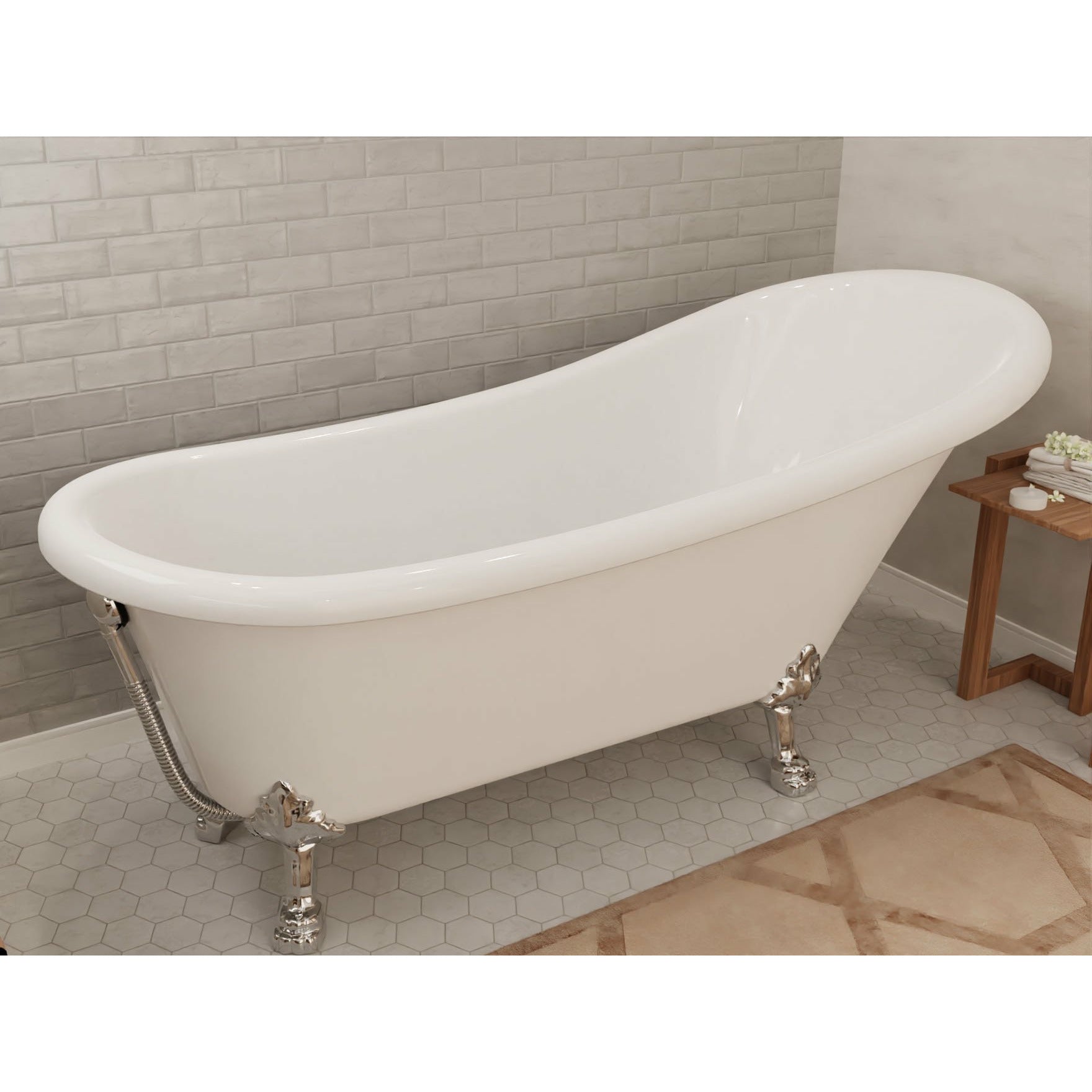 67.32” Diamante Slipper-Style Acrylic Claw Foot Tub in White