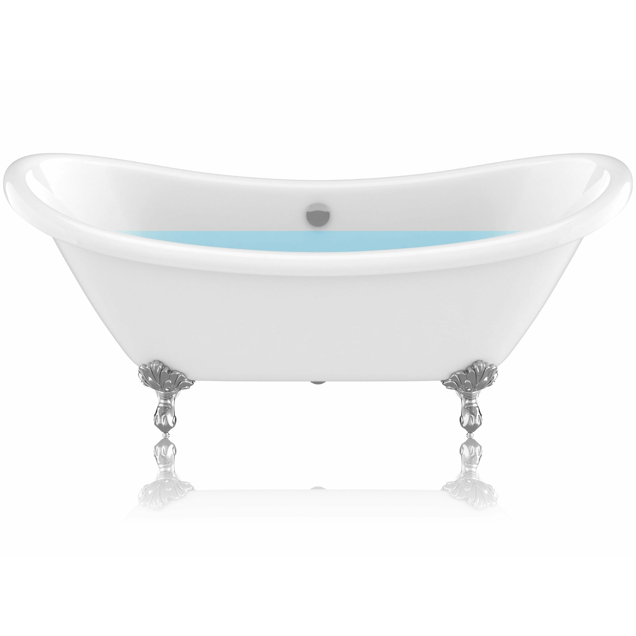 Classic, contemporary and chic all in one, our beautiful Belissima claw foot tub makes a bold statement of style for any bathroom. Soft, sleek lines culminate in a gentle roll around the rim, complimented by the striking contrast of chrome claw feet. The Double slipper design positions faucet and drain in the middle of the tub, giving you the freedom to lounge on either side. Our expert craftsmanship is backed by a limited lifetime warranty that guarantees you’ll enjoy your tub for years to come.