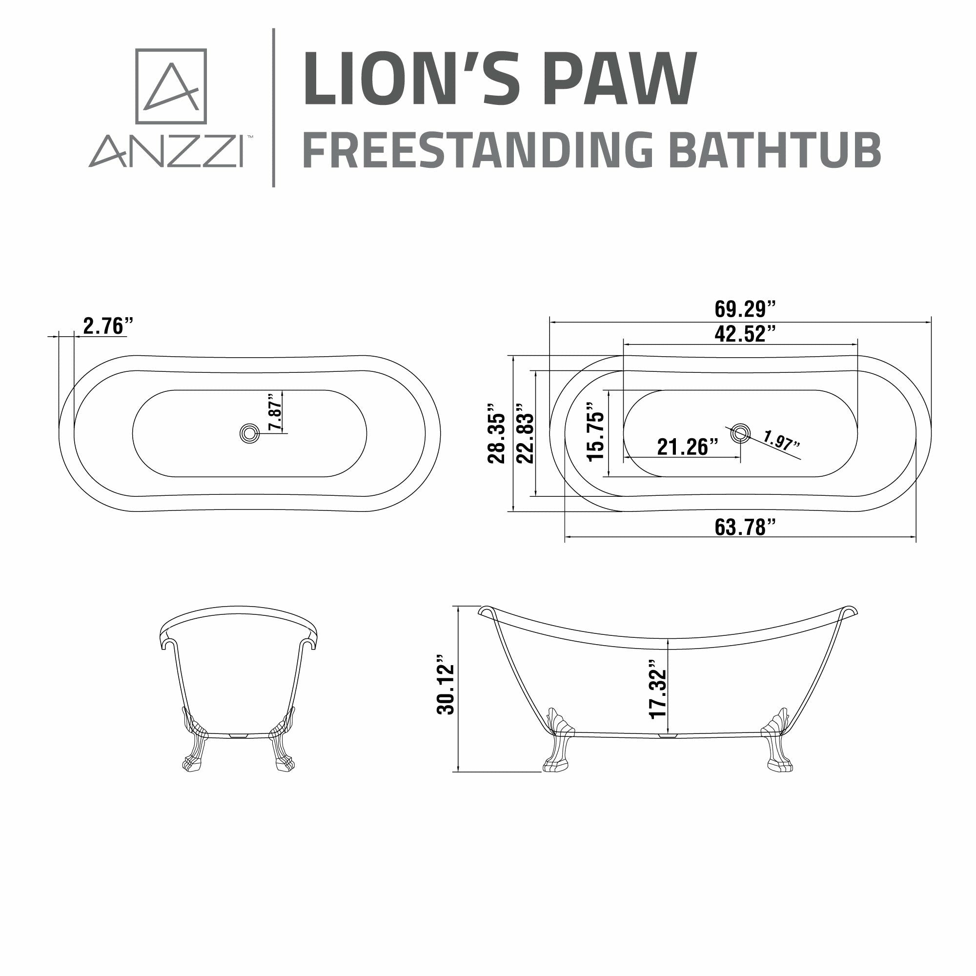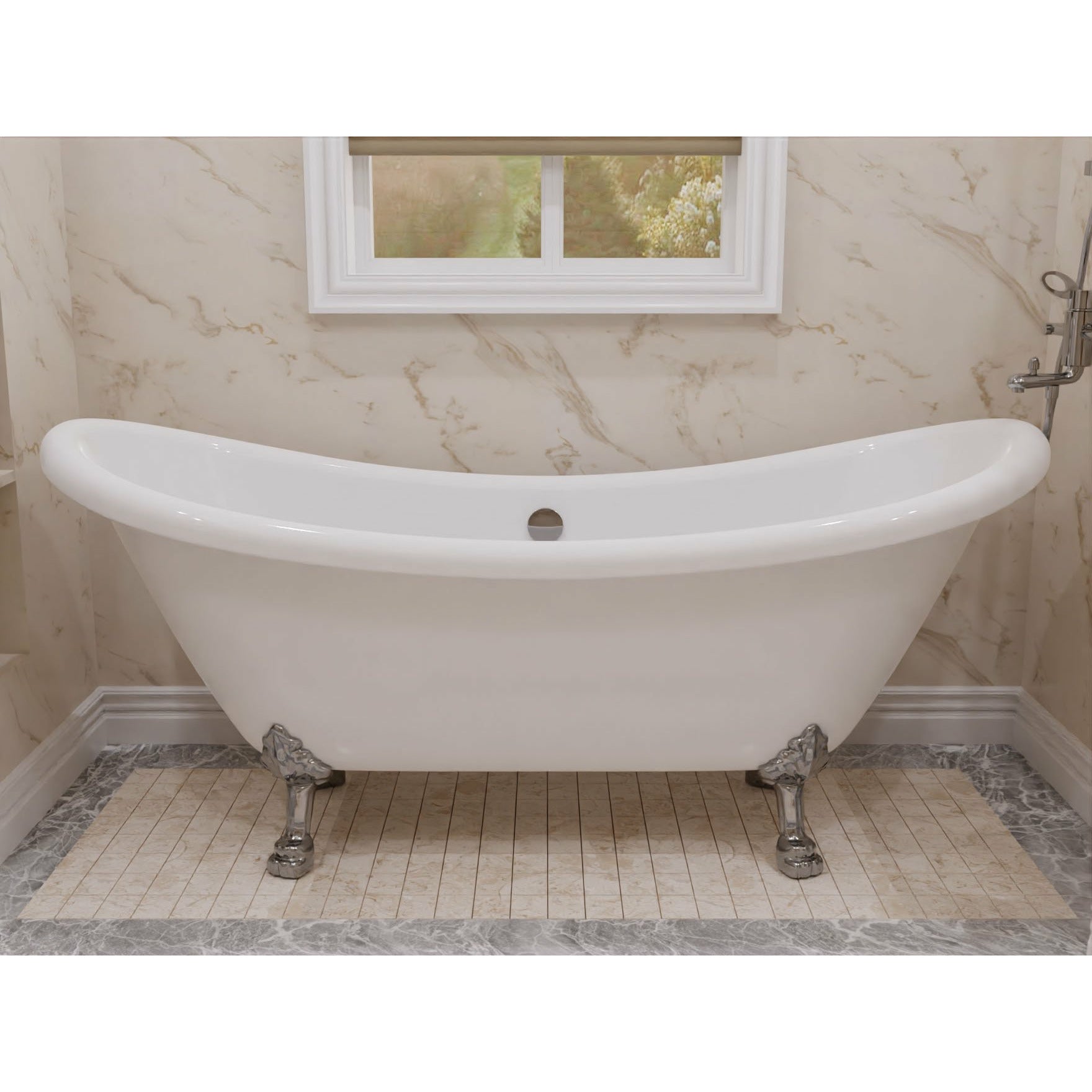 69.29” Belissima Double Slipper Acrylic Claw Foot Tub in White