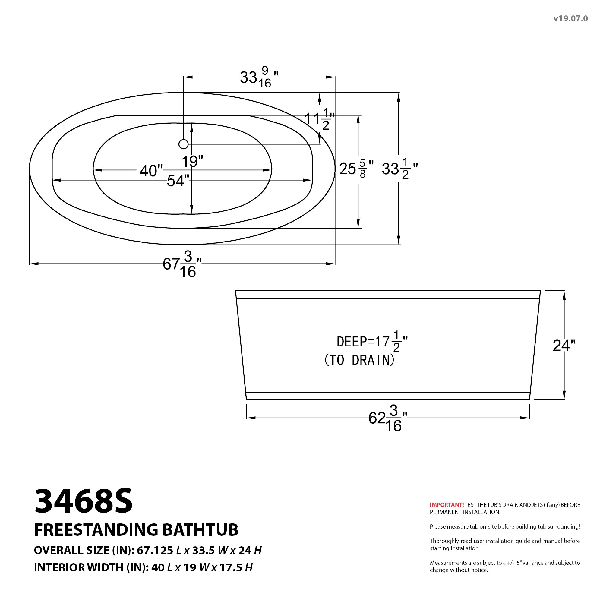 Interior of tub is oval shape