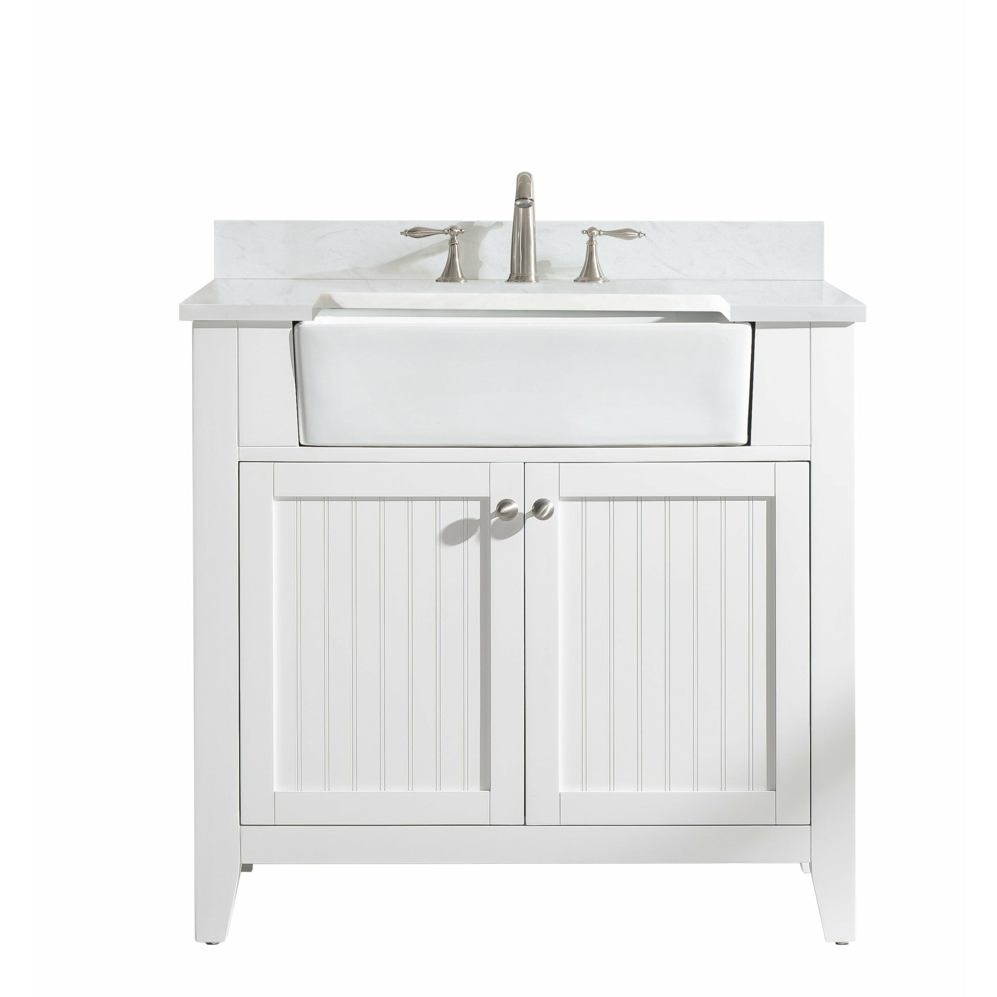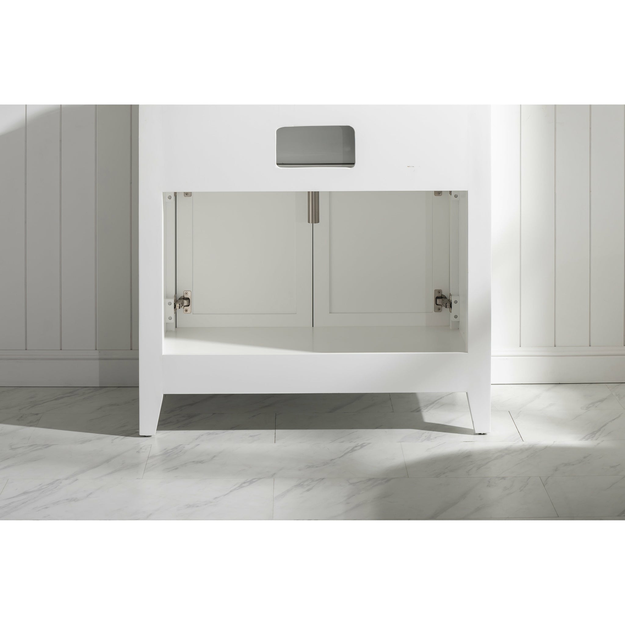 The Estate modular combo vanity set by Design Element combines traditional charm with modern functionality into a beautiful statement piece for your bathroom. This unique modular vanity set is comprised of 2 single vanities connected by a floating make up table that is both aesthetically beautiful and functional. All Estate vanity cabinets are constructed from solid birch hardwood and paired with a 1 inch thick white quartz countertop and backsplash. Soft closing doors and drawers provide smooth and quiet operations, while brushed finished metal hardware provides the perfect finishing touch. Other fine details include white porcelain sinks with overflow, dovetail joint drawer construction, predrilled holes to accommodate 8-inch widespread faucets, and multi-layer paint finish on the cabinets provide beauty and durability for years to come. Mirrors, faucets, and drains are not included.