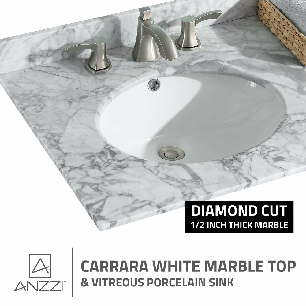 ANZZI is introducing a new breed of bathroom vanities that emphasizes elegance and class while offering spacious storage and high end performance. The CHATEAU series comes with a Carrara White Marble top and a handmade wood cabinet body with a rich Gray finish shielded by ANZZI’s Paladin Protection coating which guards against scratch and marks ensuring a long lasting unblemished finish. The CHATEAU series also boasts ample storage space behind soft closing compartments. The matching wall mounted silver glass mirror compliments the modern look and feel of the vanity. Make the CHATEAU a part of your collection and elevate your bathroom to the luxurious oasis you deserve.
