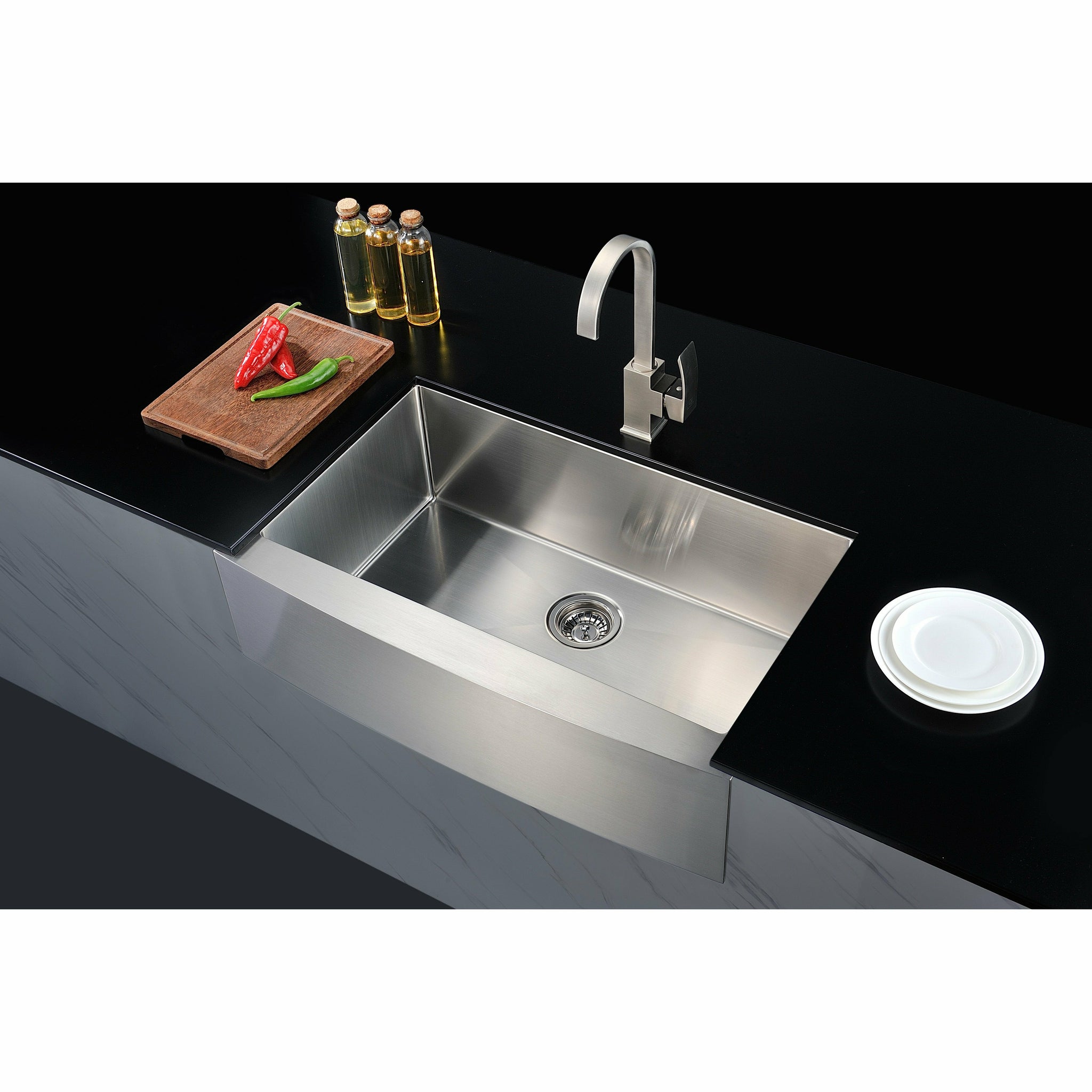 Elysian Farmhouse Stainless Steel 32 in. 0-Hole Single Bowl Kitchen Sink in Brushed Satin