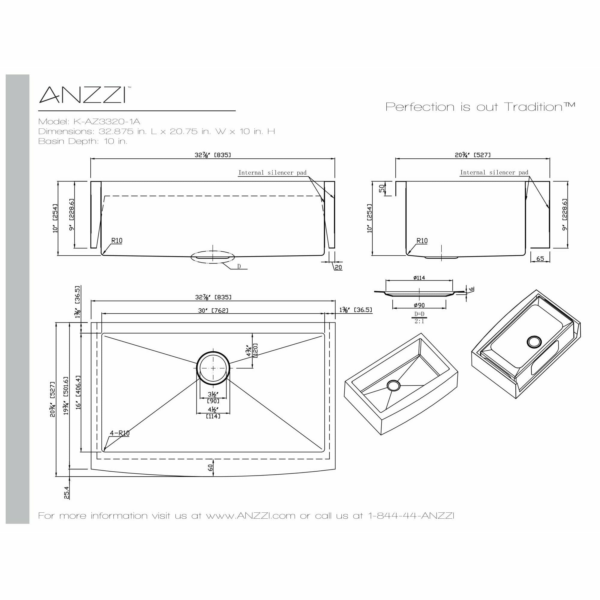 ANZZI presents the 32 inch ELYSIAN SERIES hand crafted farmhouse kitchen sink. Representing the latest in modern home fixture designs and traditional European crafting technique this stunning display of artistry is hand shaped to perfection using RHINO ALLOY certified 16 gauge 304 stainless steel. Only ANZZI hand crafted farmhouse kitchen sinks utilize RHINO ALLOY certified materials for superior strength and quality. The cavernous deep soaking basin will comfortably accommodate the largest dish loads including pots, pans and more. And every ANZZI sink features the largest Echo-STOP sound dampening pads available and a layer of protective composite coating to further quiet noise and prevent condensation. Well defined diversion lines ensure quick and total water drainage and the subtly curved corners allow of easier cleaning. ANZZI carries a proud tradition of crafting long lasting, quality home fixtures. With ANZZI perfection is our tradition.