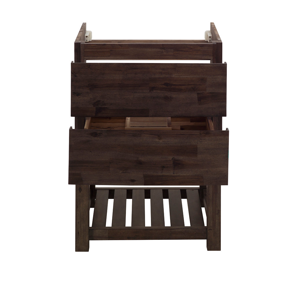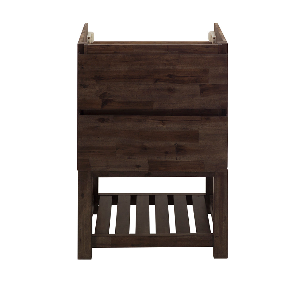 The Fresca Formosa Wall Hung Modern Bathroom Cabinet is superbly crafted of solid Acacia wood, known for its magnificent beauty and durability. It has a warm grey finish with a hint of brown throughout, and a natural grain that will inject luxurious warmth into any space. A masterpiece of elegance and style, this wall-mounted cabinet measures 23” in width. Two solid wood, soft-closing dovetail drawers are perfect for organizing all of your daily essentials. The solid pine drawers are clear coated and feature a mitered, wrap-around design that adds to the superior detailing. Cove routed pulls are carved directly into the drawers keeping the design sharp and sophisticated. The Fresca Formosa Wall Hung Modern Bathroom Cabinet is available in multiple sizes and styles. It includes installation hardware.