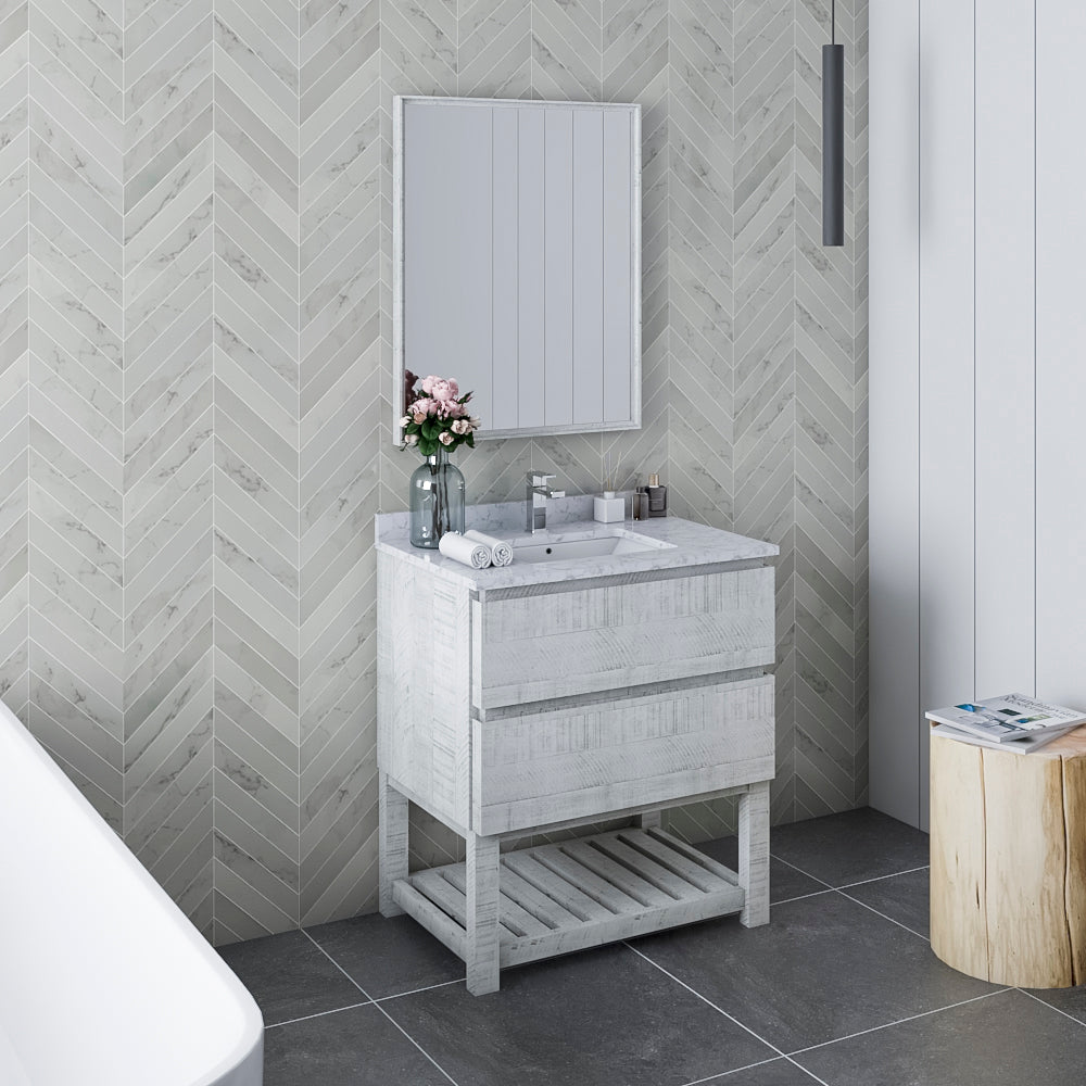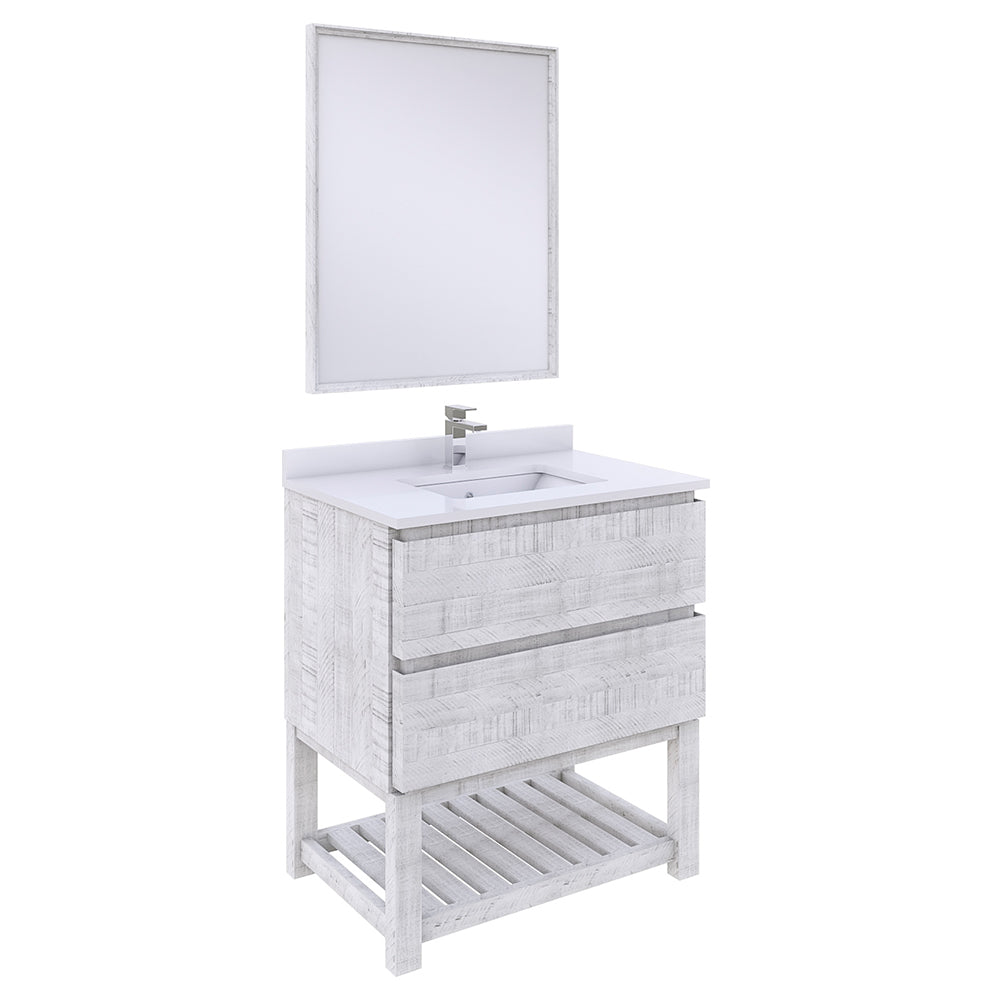 Fresca Formosa 30" Floor Standing Modern Bathroom Vanity w/ Open Bottom & Mirror in Rustic White
