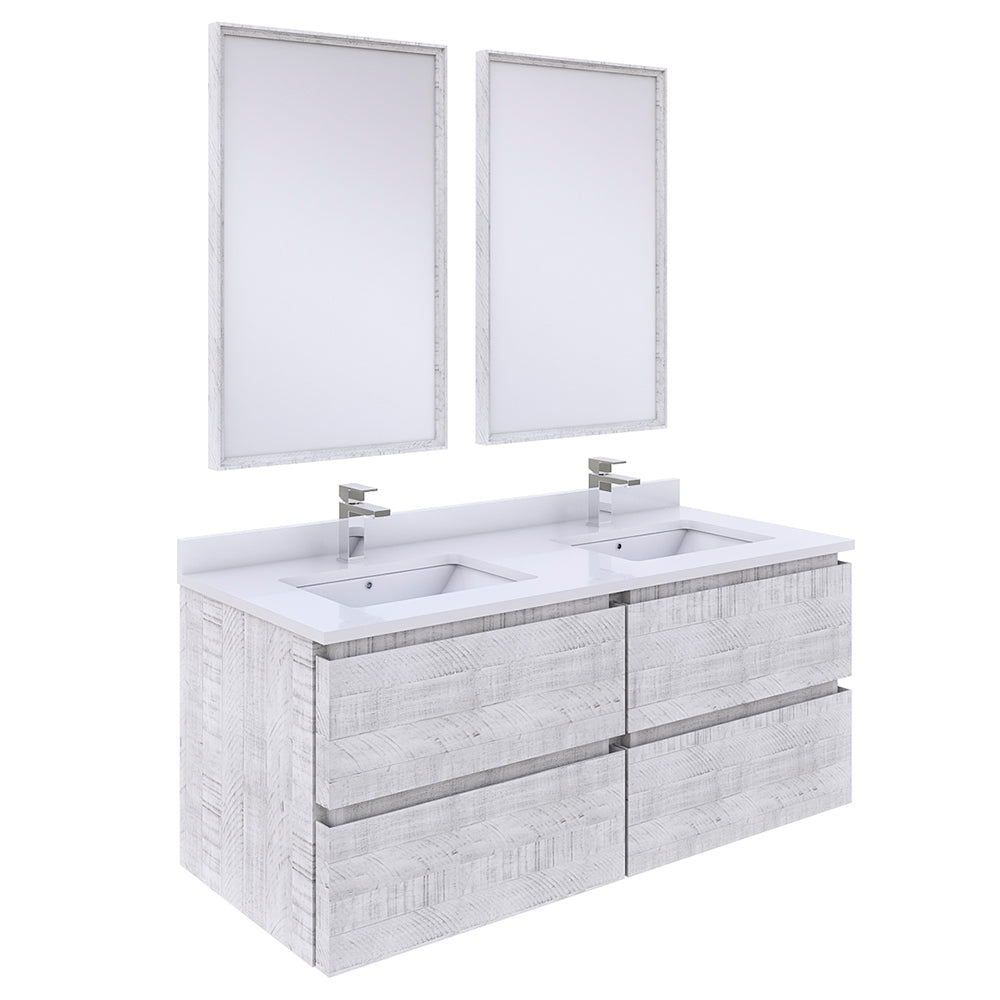 Fresca Formosa 48" Wall Hung Double Sink Modern Bathroom Vanity w/ Mirrors in Rustic White