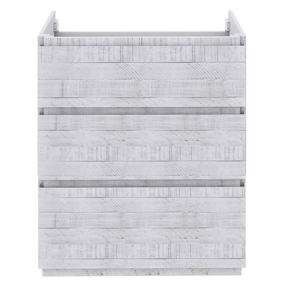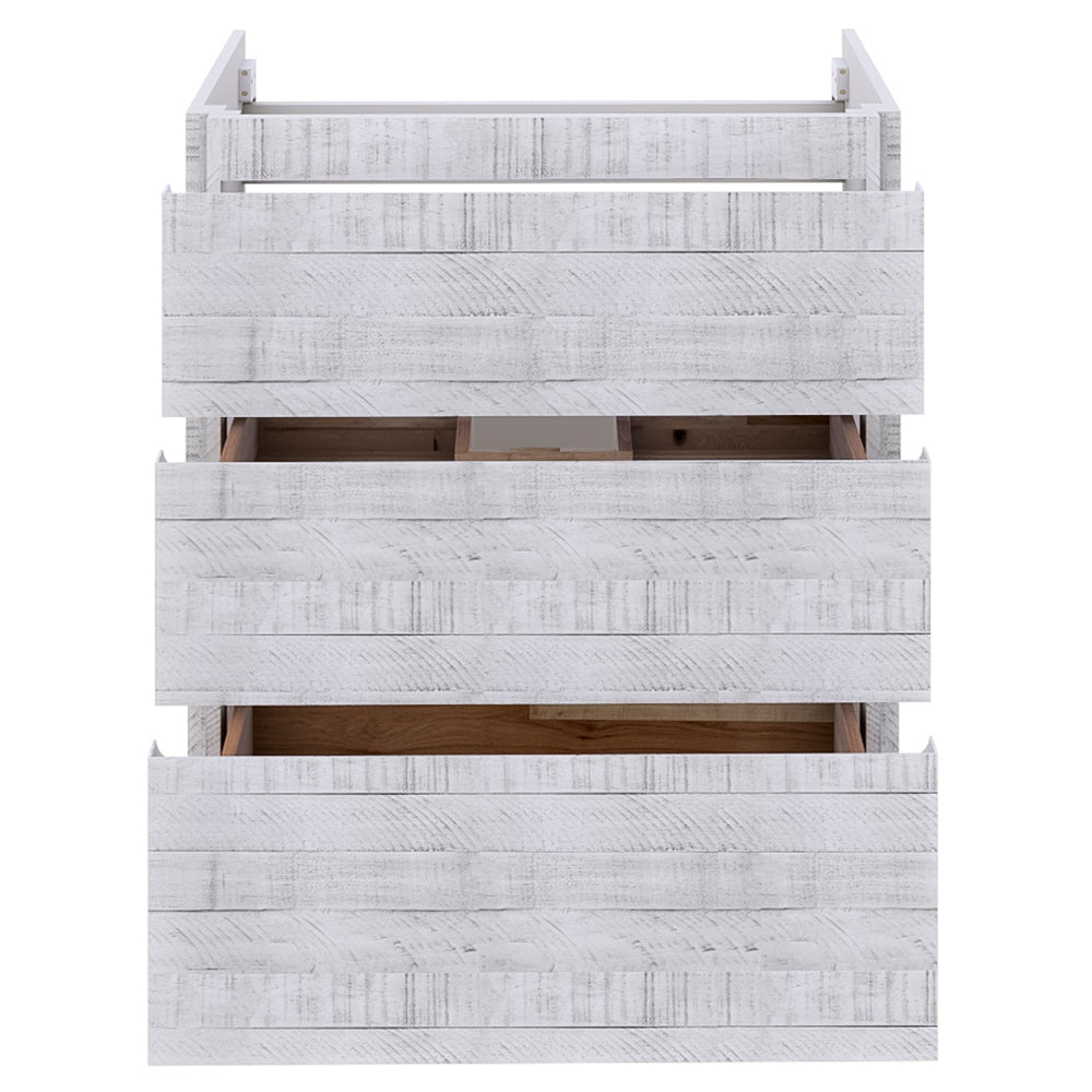 The Fresca Formosa Floor Standing Double Sink Modern Bathroom Cabinet is superbly crafted of solid Acacia wood, known for its magnificent beauty and durability. It has a warm grey finish with a hint of brown throughout, and a natural grain that will inject luxurious warmth into any space. A masterpiece of elegance and style, this free-standing cabinet measures 58” in width. With six solid wood, soft-closing dovetail drawers, this bathroom cabinet features tons of storage, ideal for keeping a family organized. While all drawers provide plenty of space, the bottom drawers are deeper with full storage capacity. The solid pine drawers are clear coated and feature a mitered, wrap-around design that adds to the superior detailing. Cove routed pulls are carved directly into the drawers keeping the design sharp and sophisticated. The Fresca Formosa Cabinet is available in multiple sizes and styles. It includes installation hardware.