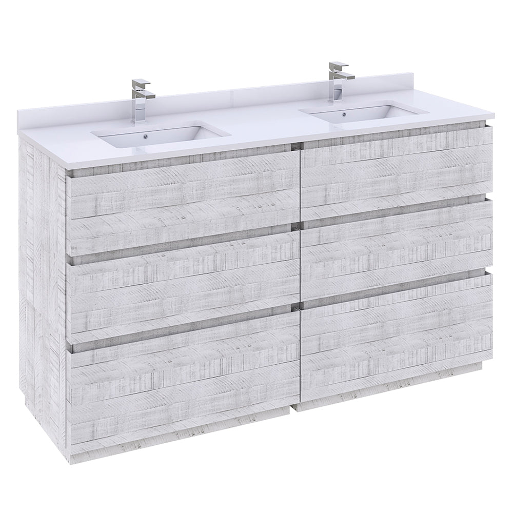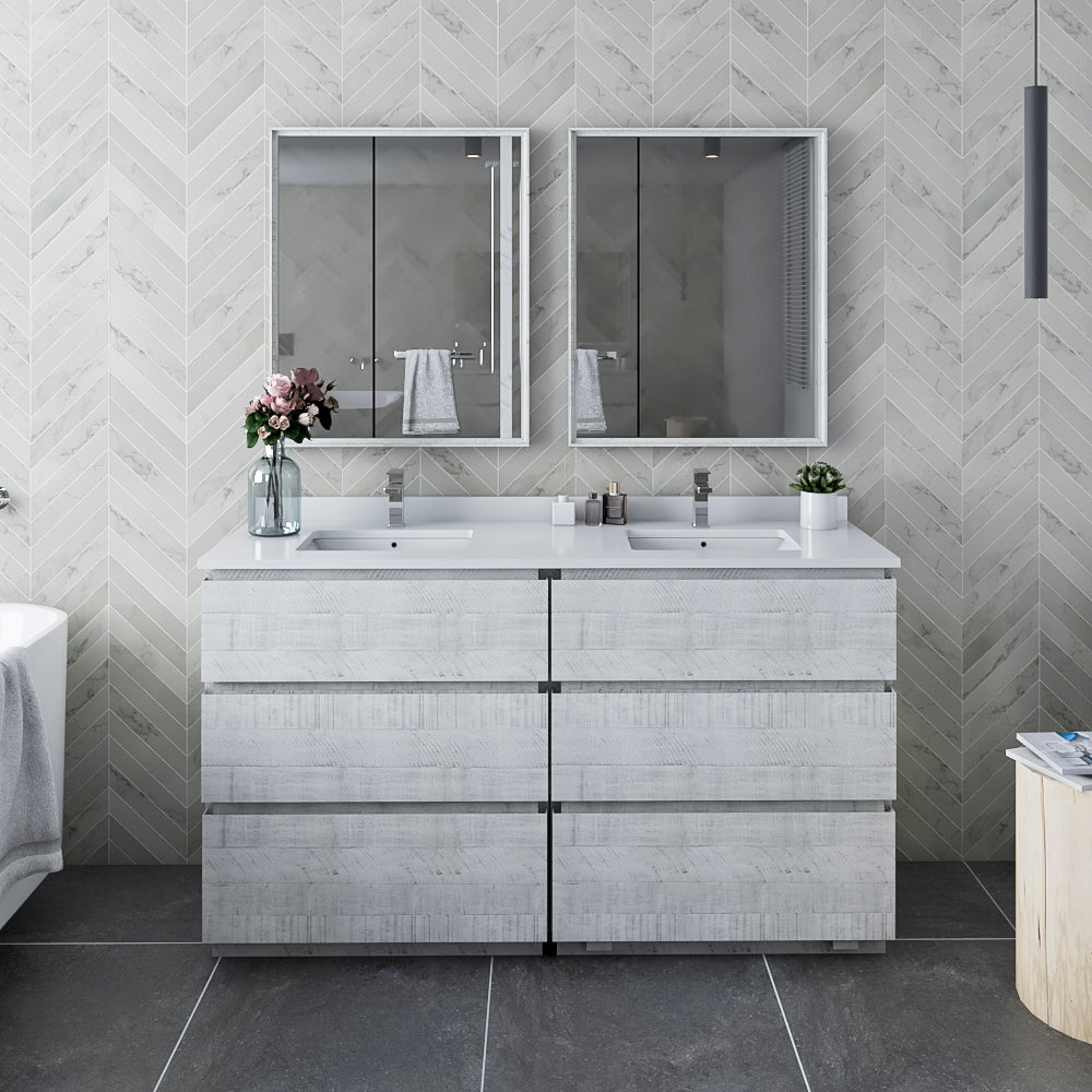 Fresca Formosa 58" Floor Standing Double Sink Modern Bathroom Cabinet in Rustic White