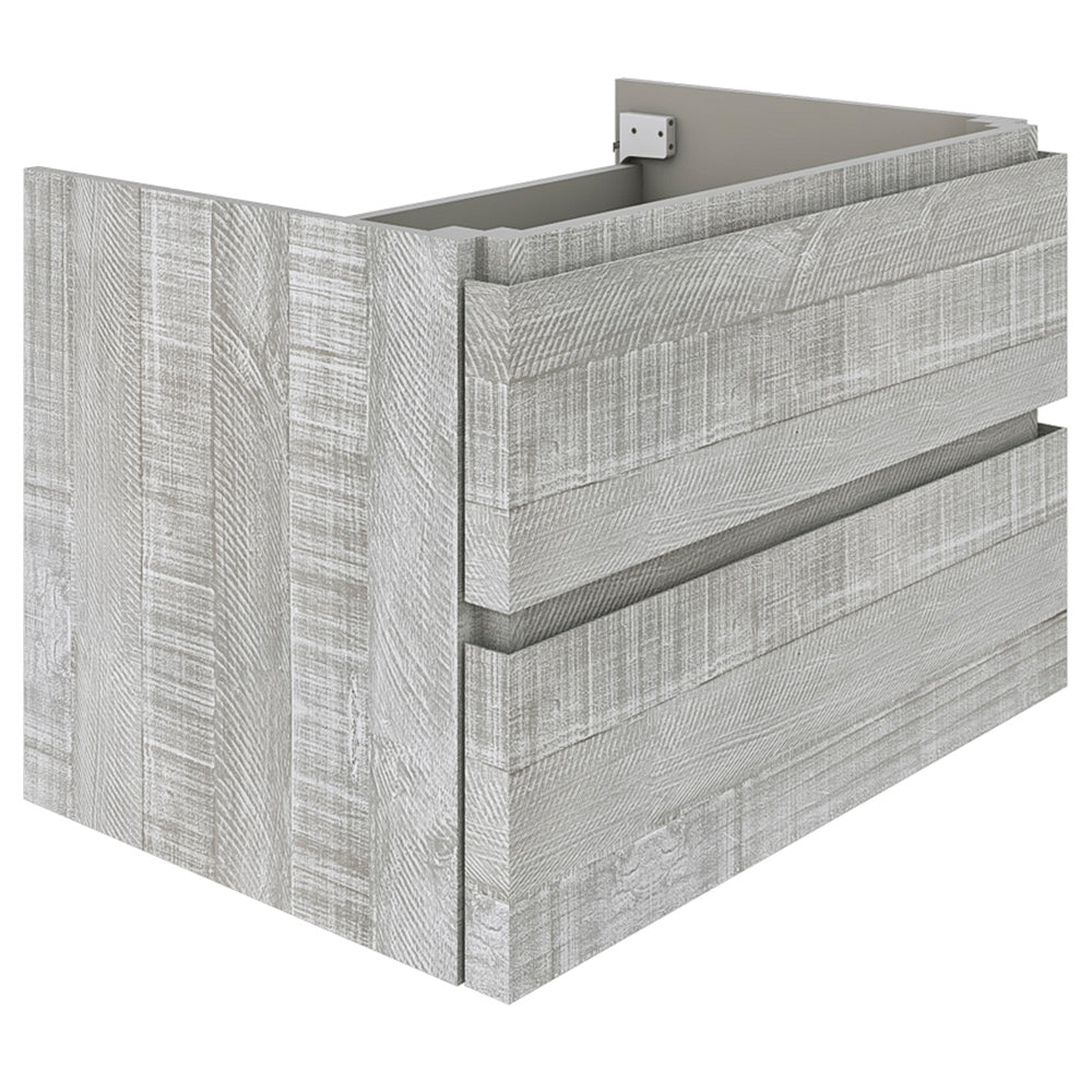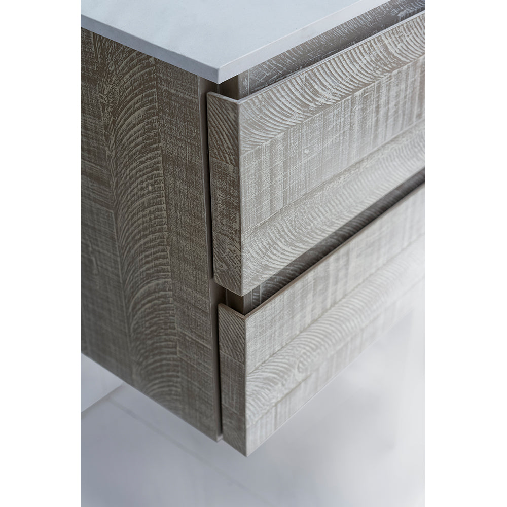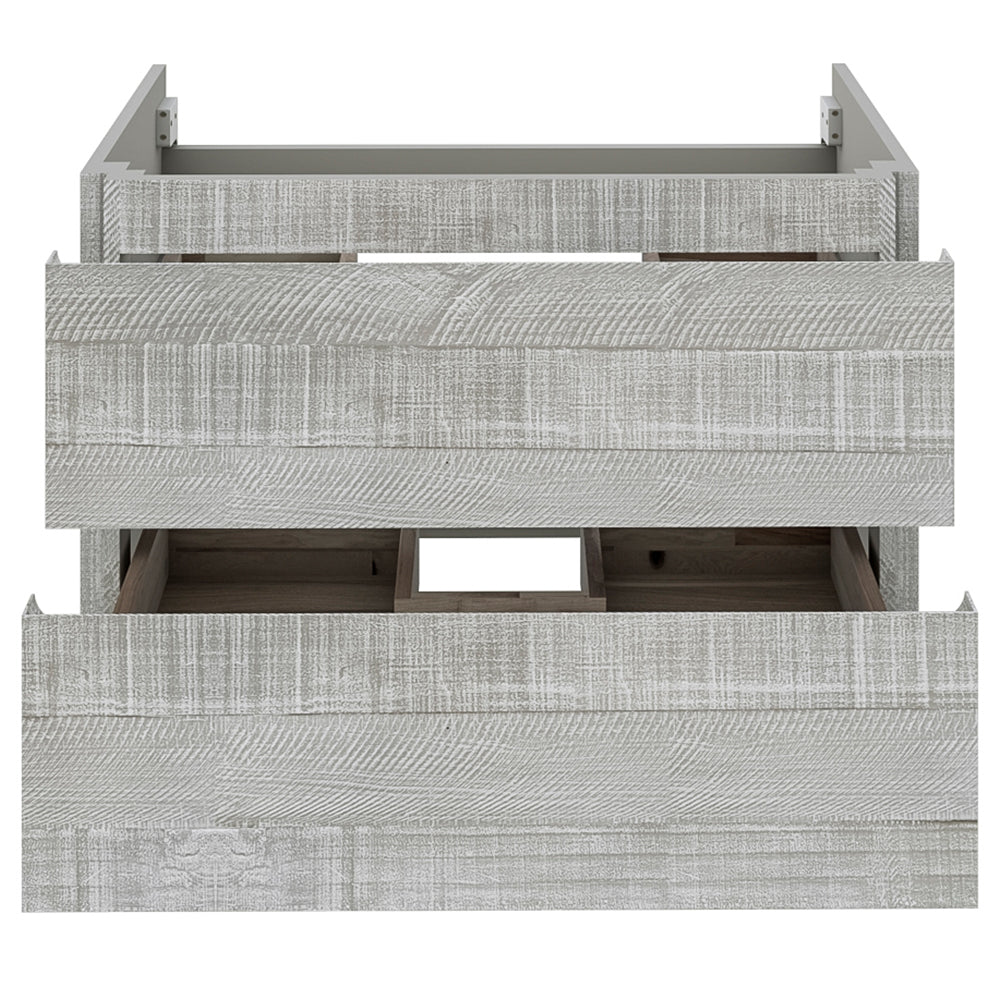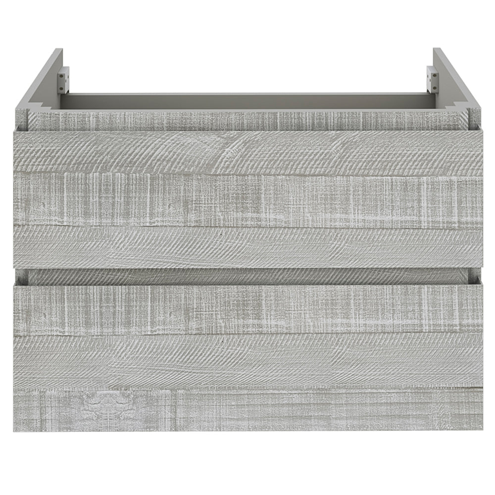 The Fresca Formosa Wall Hung Double Sink Modern Bathroom Cabinet is superbly crafted of solid Acacia wood, known for its magnificent beauty and durability. It has a warm grey finish with a hint of brown throughout, and a natural grain that will inject luxurious warmth into any space. A masterpiece of elegance and style, this wall-mounted cabinet measures 58” in width. With four solid wood, soft-closing dovetail drawers, this bathroom cabinet features tons of storage, ideal for keeping a family organized. The solid pine drawers are clear coated and feature a mitered, wrap-around design that adds to the superior detailing. Cove routed pulls are carved directly into the drawers, keeping the design sharp and sophisticated. The Fresca Formosa Cabinet is available in multiple sizes and styles. It includes installation hardware.