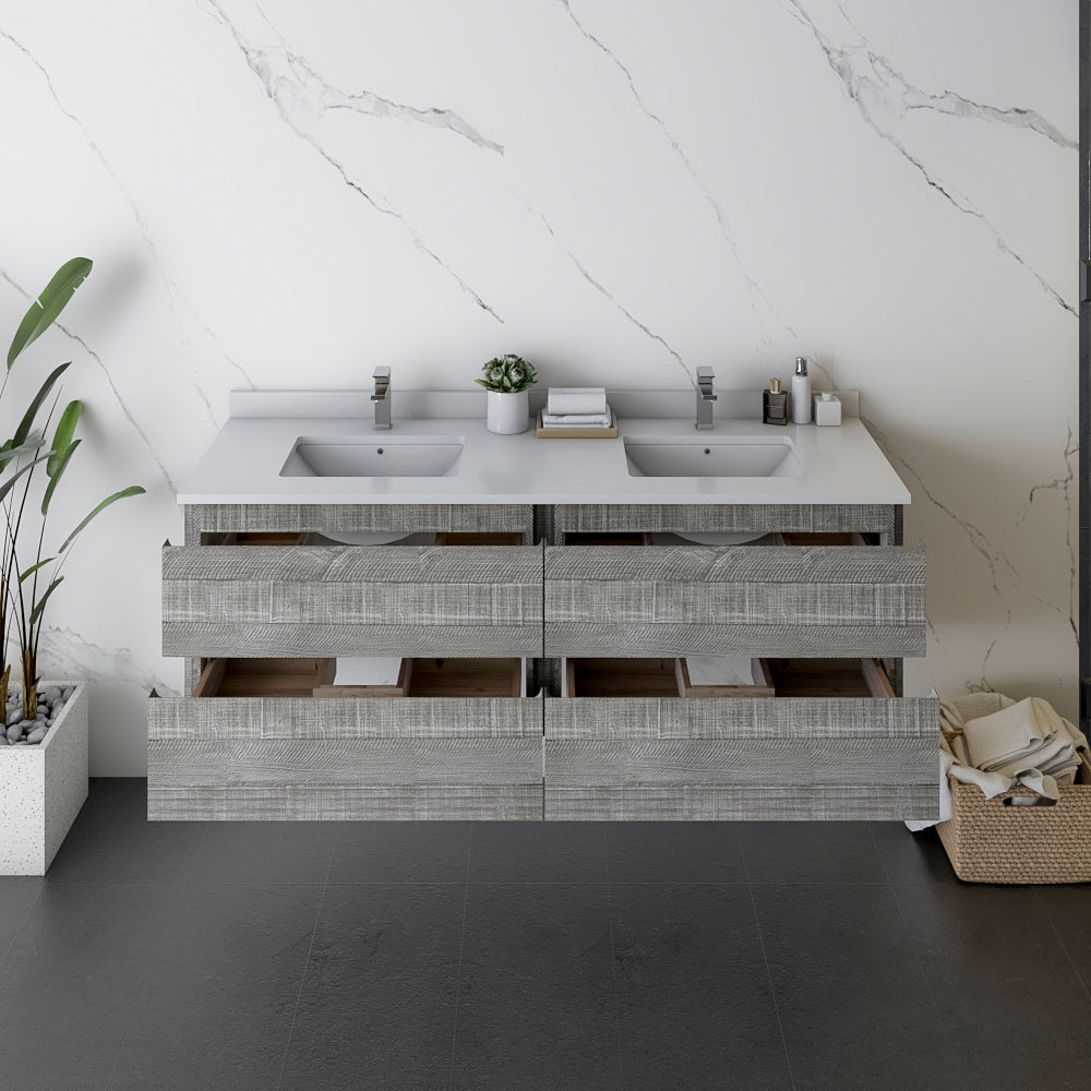 Fresca Formosa 58" Wall Hung Double Sink Modern Bathroom Cabinet in Ash