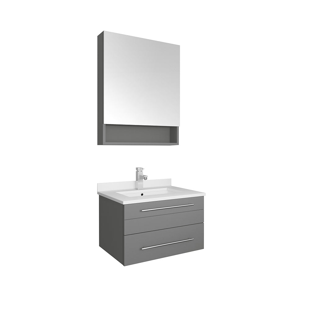 Fresca Lucera 24" Gray Wall Hung Undermount Sink Modern Bathroom Vanity w/ Medicine Cabinet
