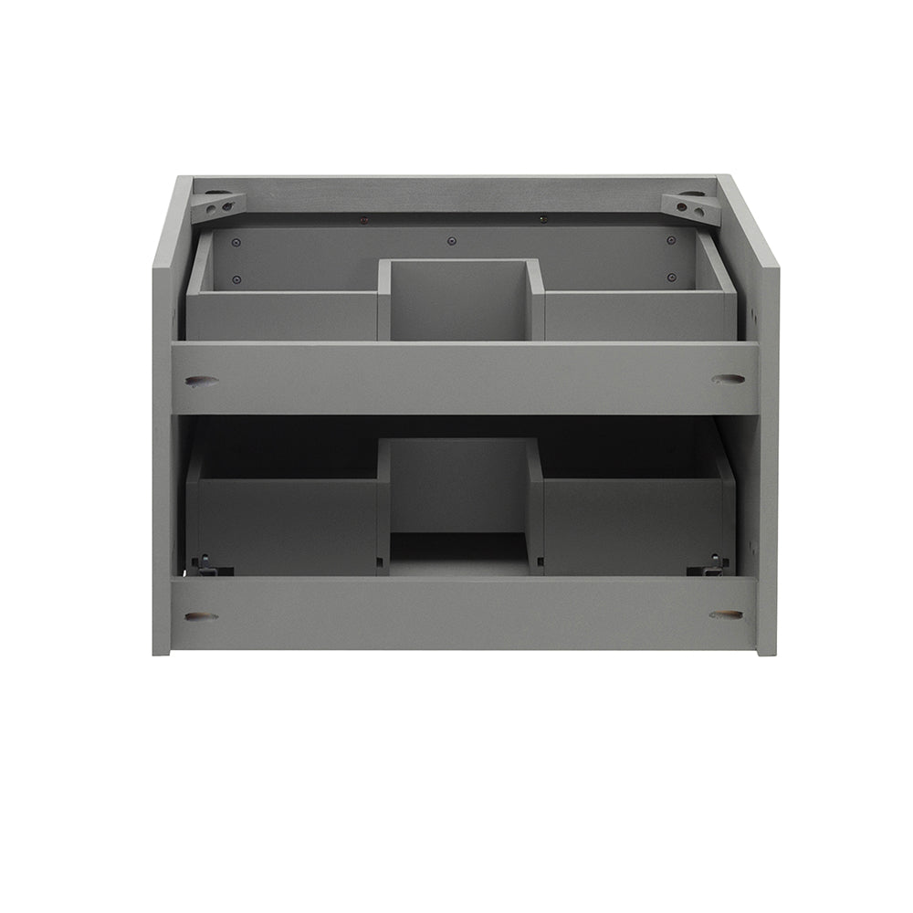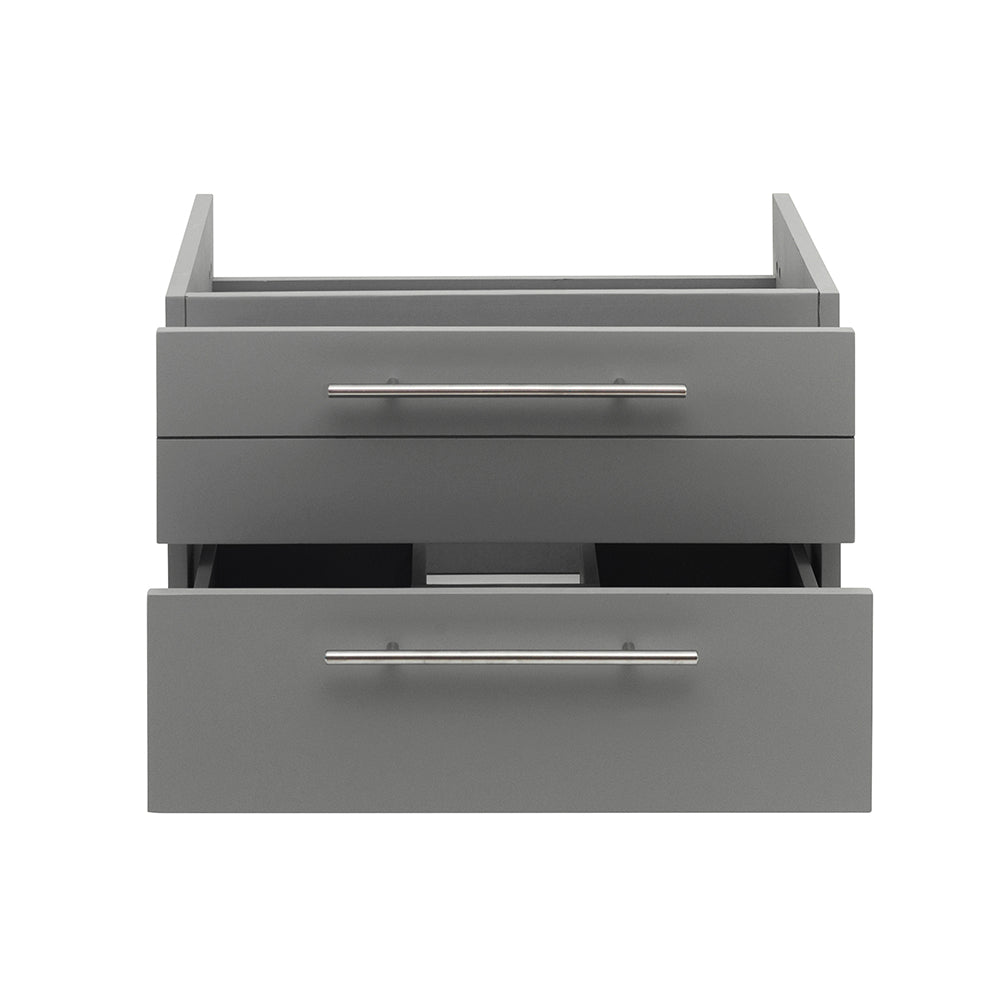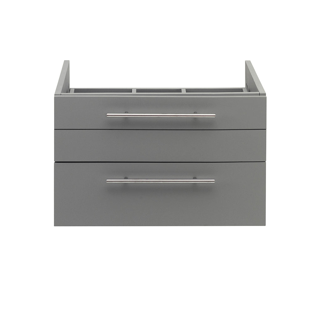 Classically simple with clean lines and an elegant look, this Fresca Lucera Wall Hung Modern Bathroom Cabinet will bring out the best in any bathroom. Measuring 24” in width, this sophisticated cabinet has two soft-closing drawers with a decorative beveled drawer plate design and slim brushed metal handles. This modern cabinet has a chic painted Gray finish. It includes installation hardware and is available in several sizes and finishes to meet your decorating needs.