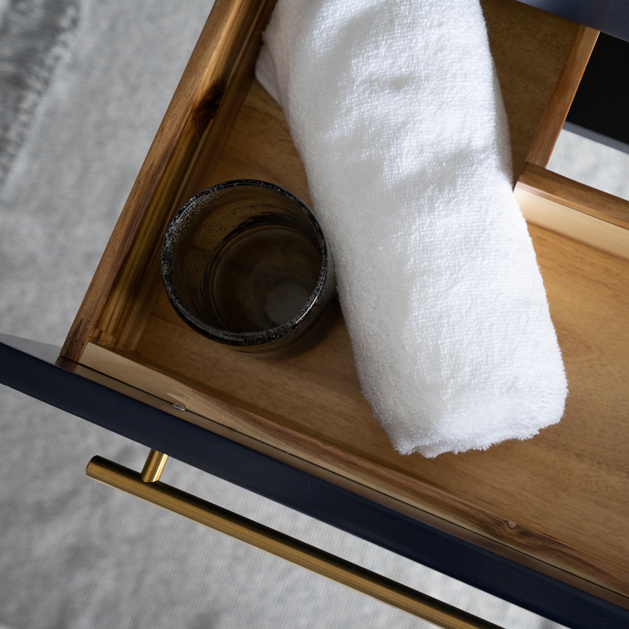 Classically simple with clean lines and a contoured undermount sink, this Fresca Lucera Wall Hung Modern Bathroom Vanity will bring out the best in any bathroom. Measuring 24” in width, this sophisticated vanity has one soft-closing drawer with a decorative beveled drawer plate design and slim brushed metal handle. This modern vanity has a chic painted Royal Blue finish. Gracing the top of the vanity is a striking quartz stone countertop with backsplash and a white ceramic undermount sink. The sink is equipped with an integrated overflow and comes with a single hole faucet, p-trap, pop-up drain and installation hardware. A matching frameless Fresca 20” Bathroom Medicine Cabinet is also included.