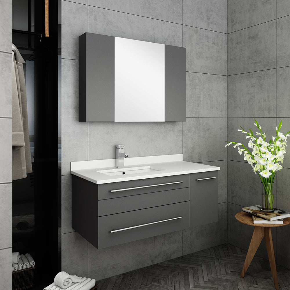 Fresca Lucera 36" Gray Wall Hung Undermount Sink Modern Bathroom Vanity w/ Medicine Cabinet - Left Version