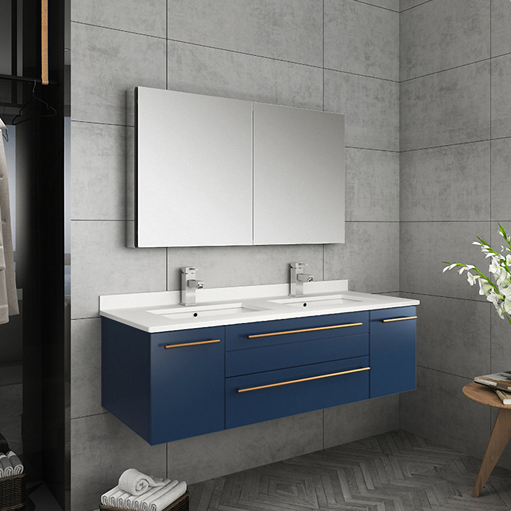 Fresca Lucera 48" Royal Blue Wall Hung Double Undermount Sink Modern Bathroom Vanity w/ Medicine Cabinet
