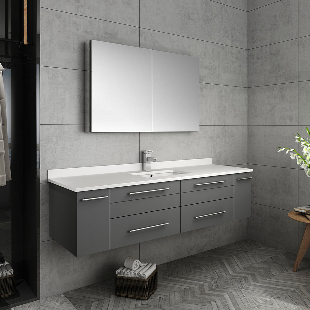 Fresca Lucera 60" Gray Wall Hung Single Undermount Sink Modern Bathroom Vanity w/ Medicine Cabinet