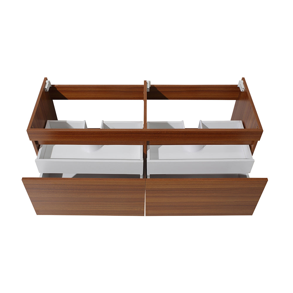 Fresca Mezzo 60" Teak Wall Hung Double Sink Modern Bathroom Cabinet