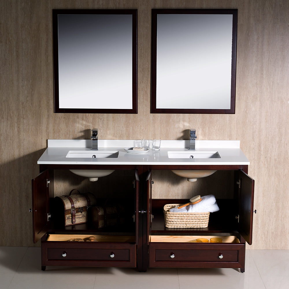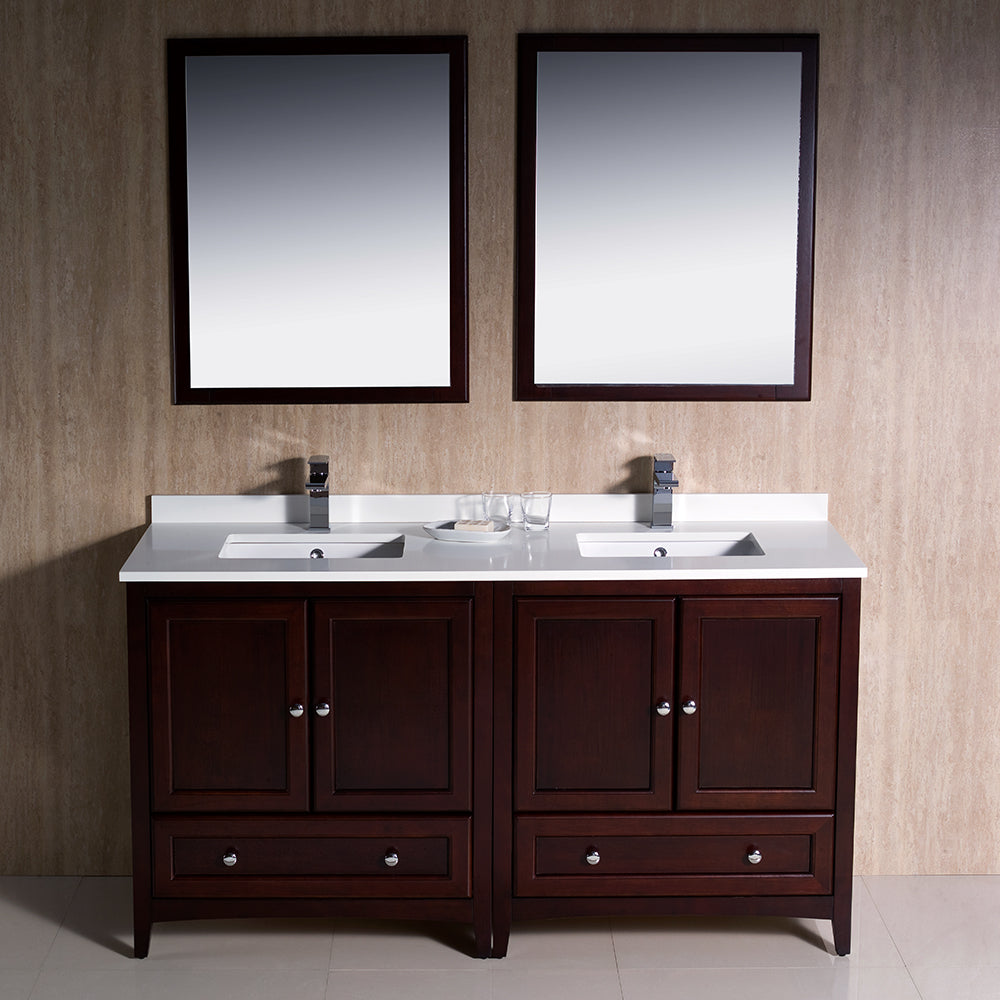 Fresca Oxford 60" Mahogany Traditional Double Sink Bathroom Vanity