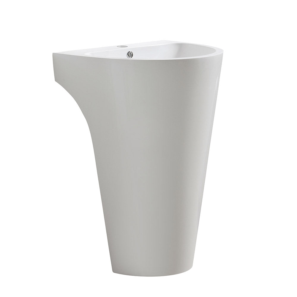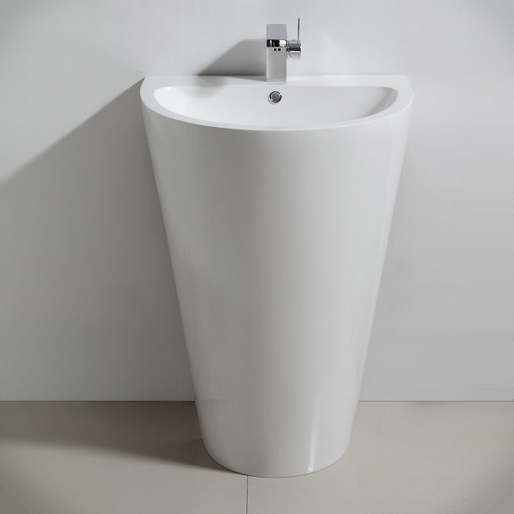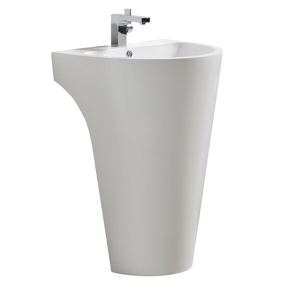Dare to be different. Add a one-of-a-kind touch to your bathroom with this contemporary white pedestal sink. With a smooth, sleek shape, this tapered pedestal sink with overflow makes the most of smaller spaces. With a single hole faucet mount, this Fresca Parma White Pedestal Sink blends beautifully with any bathroom décor and would also be perfect for a powder room. It’s a stylish find that adds a unique, modern touch to any home.