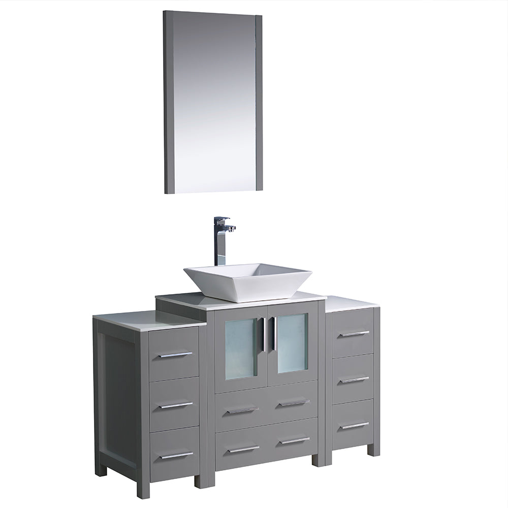 Fresca Torino 48" Gray Modern Bathroom Vanity w/ 2 Side Cabinets & Vessel Sink