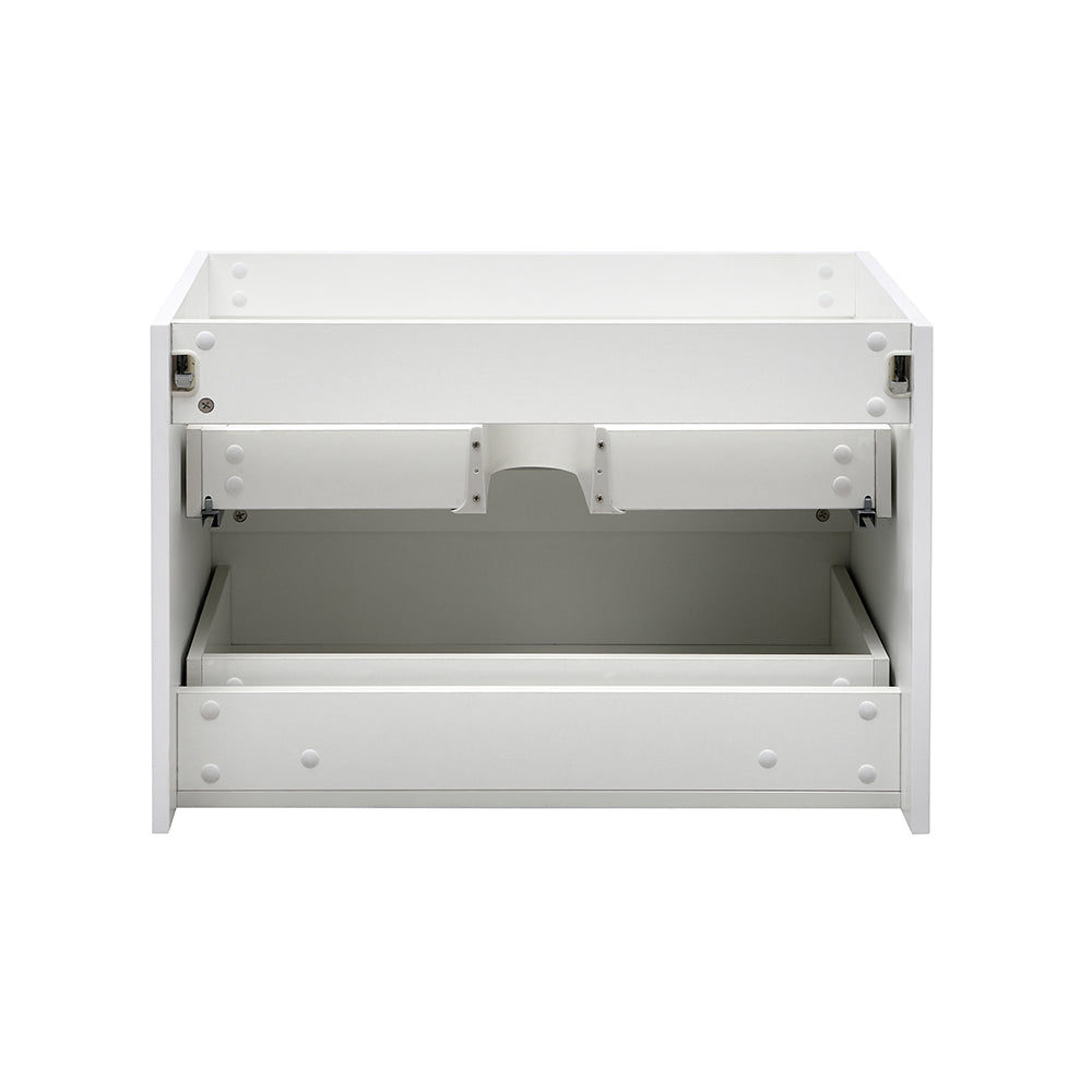 The Fresca Valencia Wall Hung Modern Bathroom Cabinet is the ideal starting point for creating an elegant and modern bathroom. The rectangular vanity offers great storage with two soft-closing drawers, just perfect for organizing all of your daily essentials. The drawers feature concealed aluminum handles and the cabinet has a stylish Glossy White finish. This cabinet is available in multiple sizes and makes a stylish statement in any home.