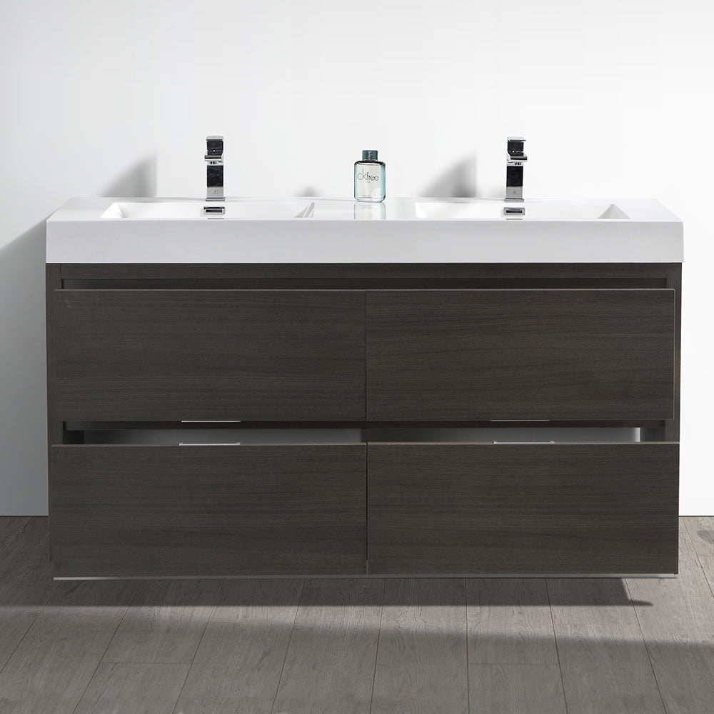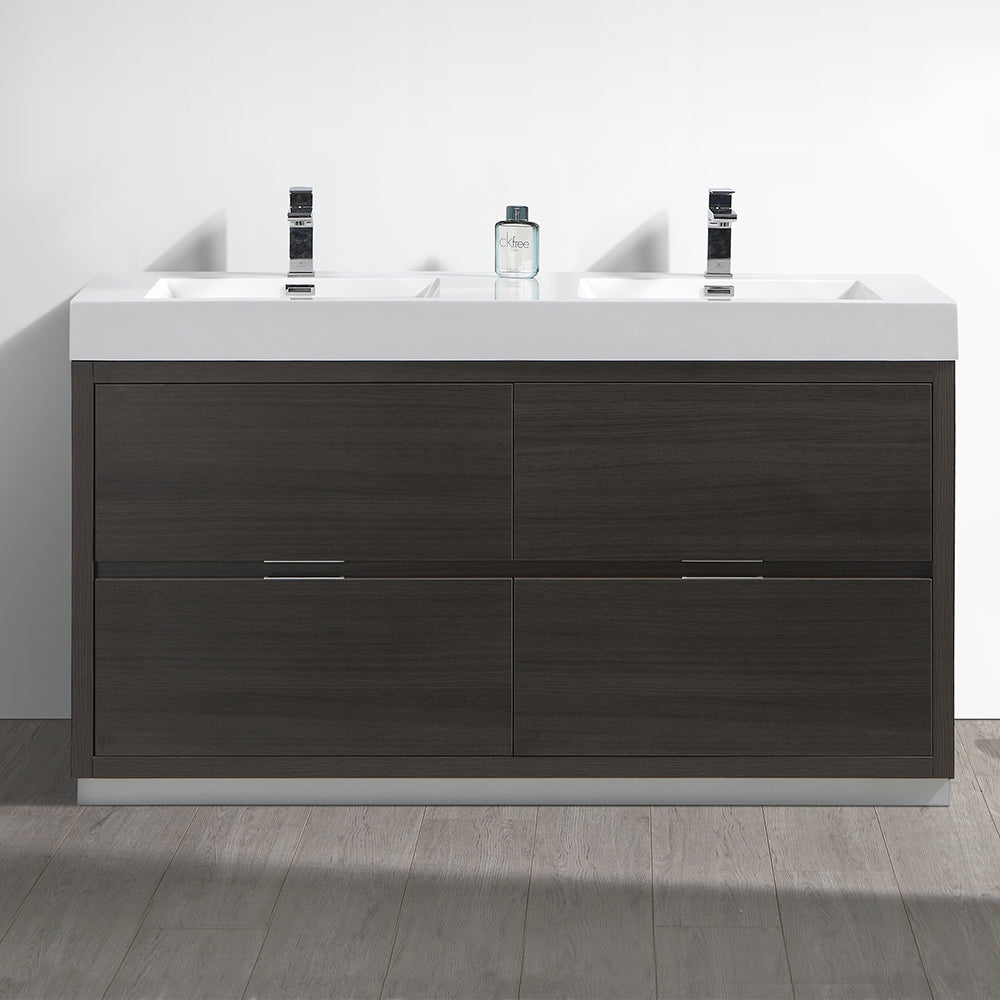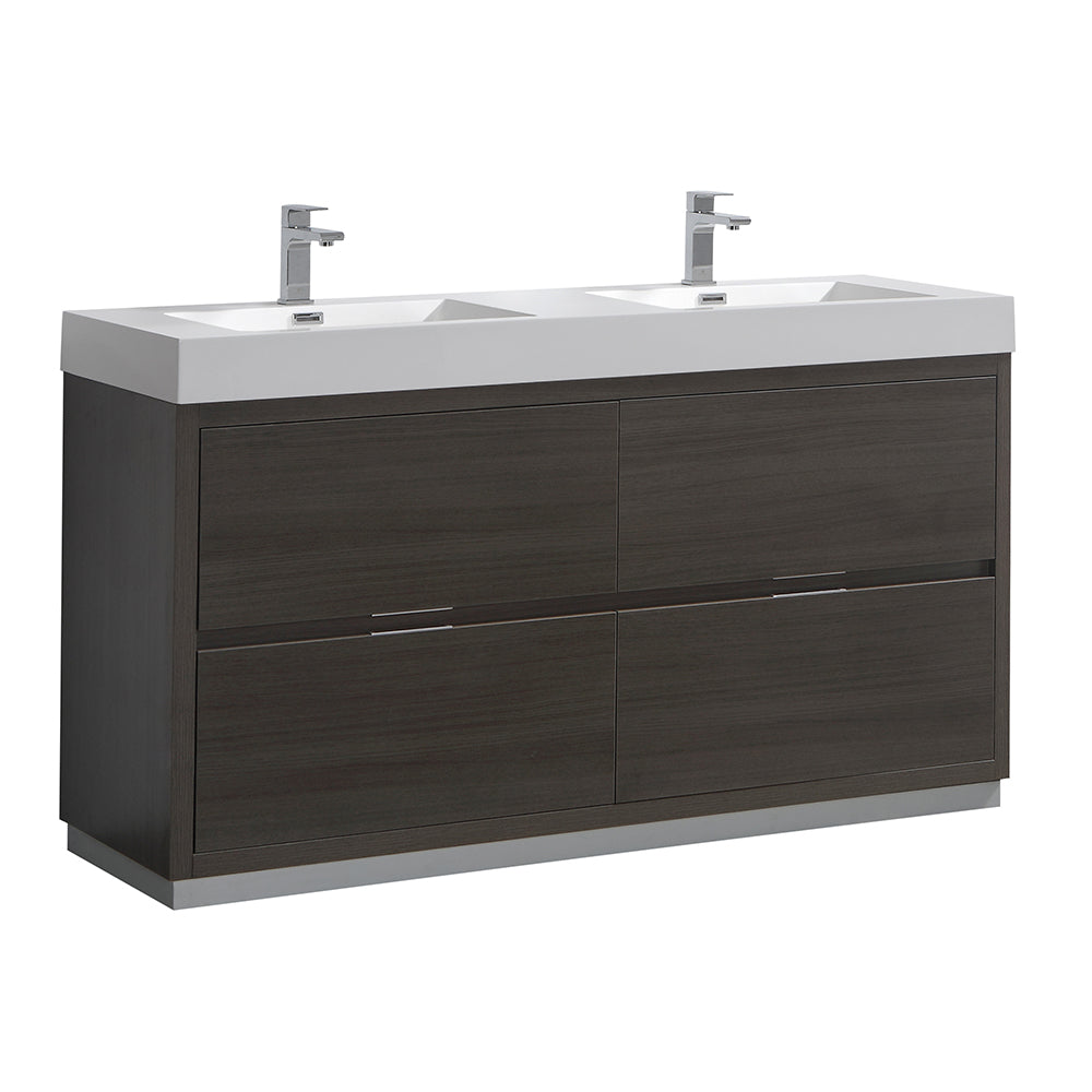 Fresca Valencia 60" Gray Oak Free Standing Double Sink Modern Bathroom Vanity