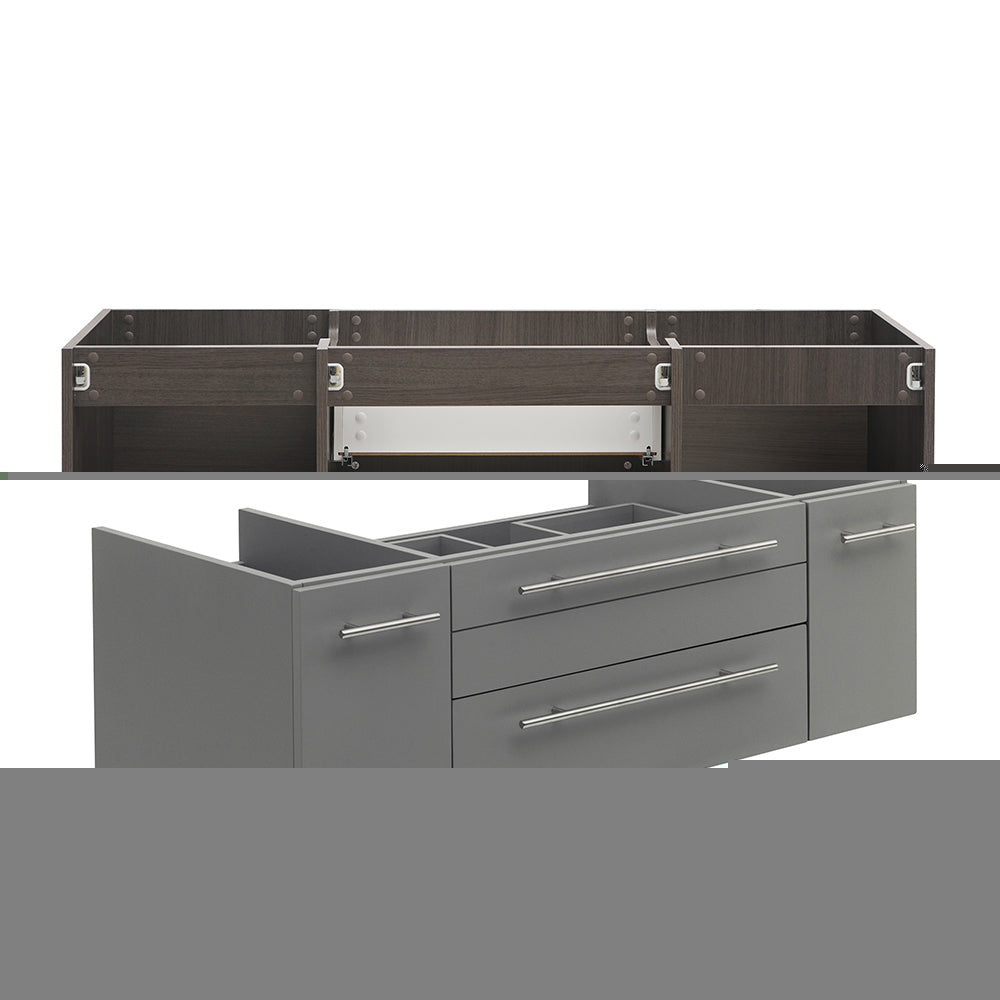 Fresca Valencia 60" Gray Oak Wall Hung Double Sink Modern Bathroom Cabinet