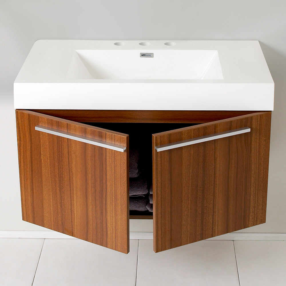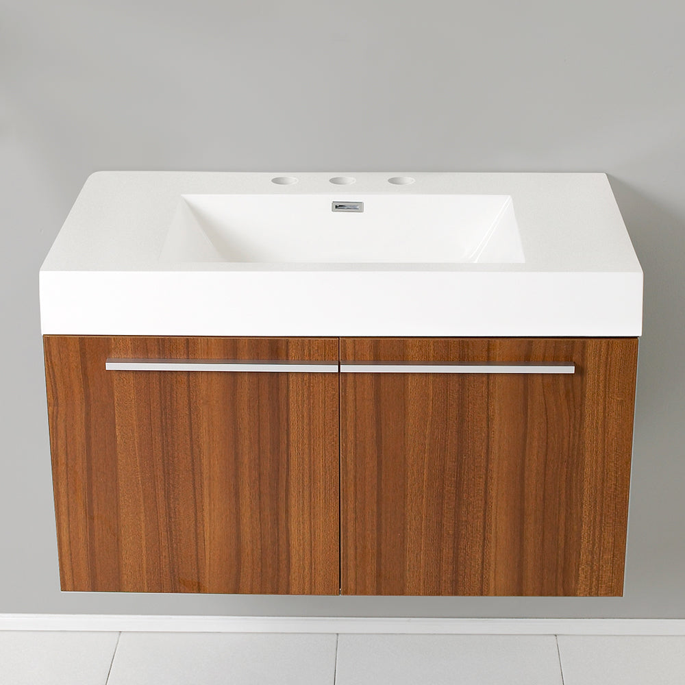 Fresca Vista 36" Teak Modern Bathroom Cabinet w/ Integrated Sink