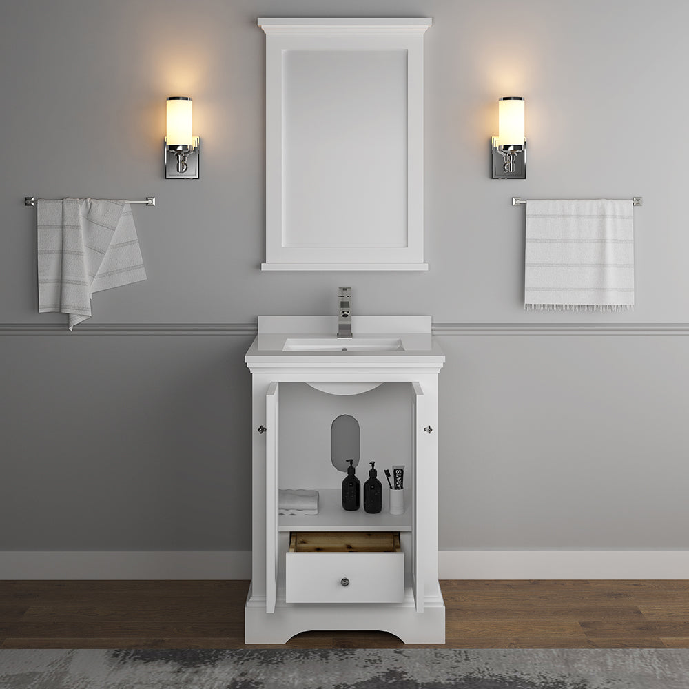 Fresca Windsor 24" Matte White Traditional Bathroom Vanity w/ Mirror