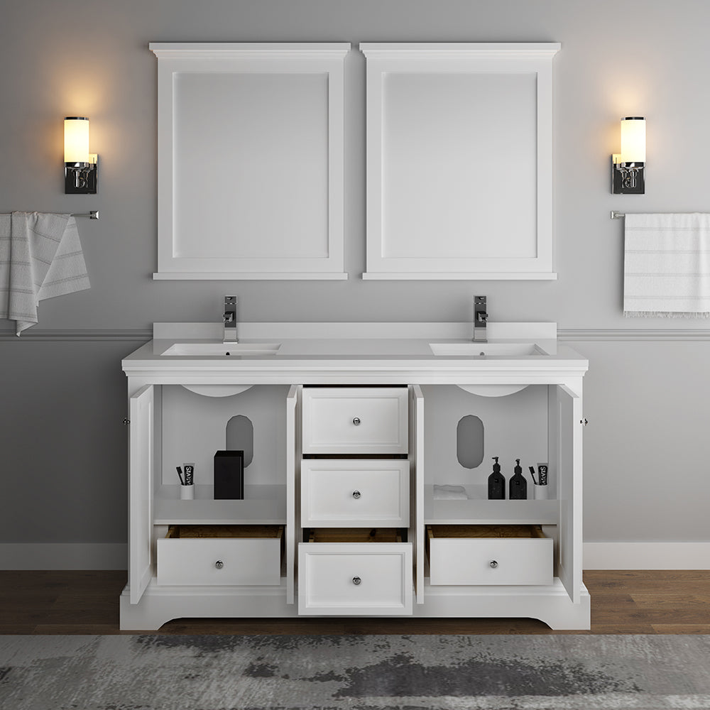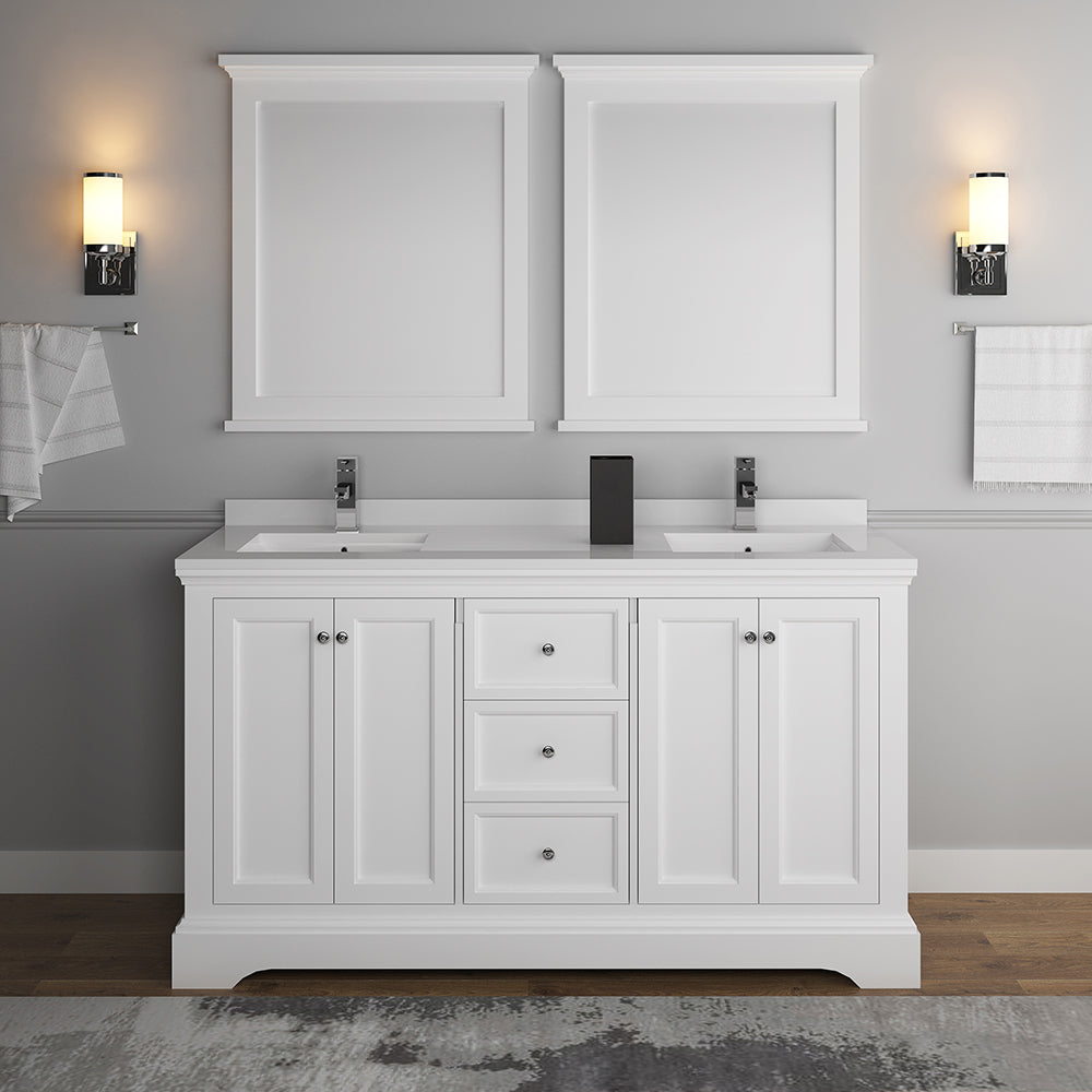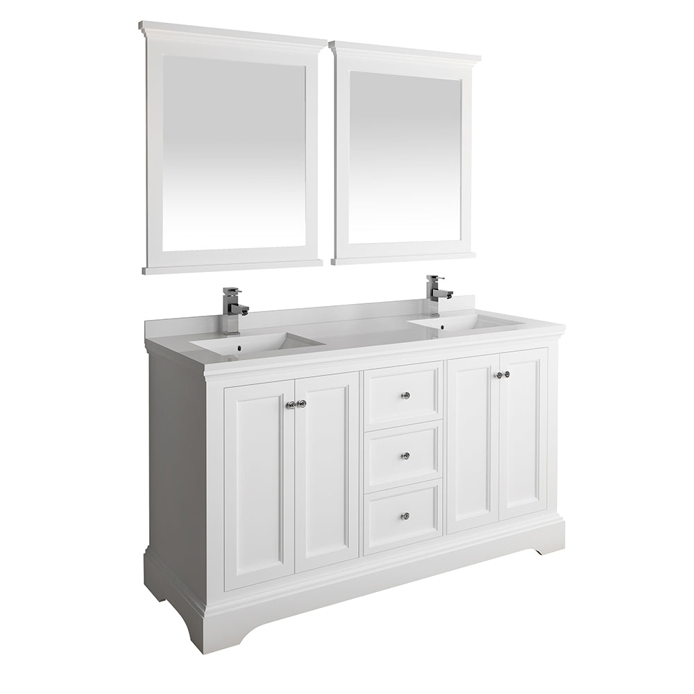 Fresca Windsor 60" Matte White Traditional Double Sink Bathroom Vanity w/ Mirrors