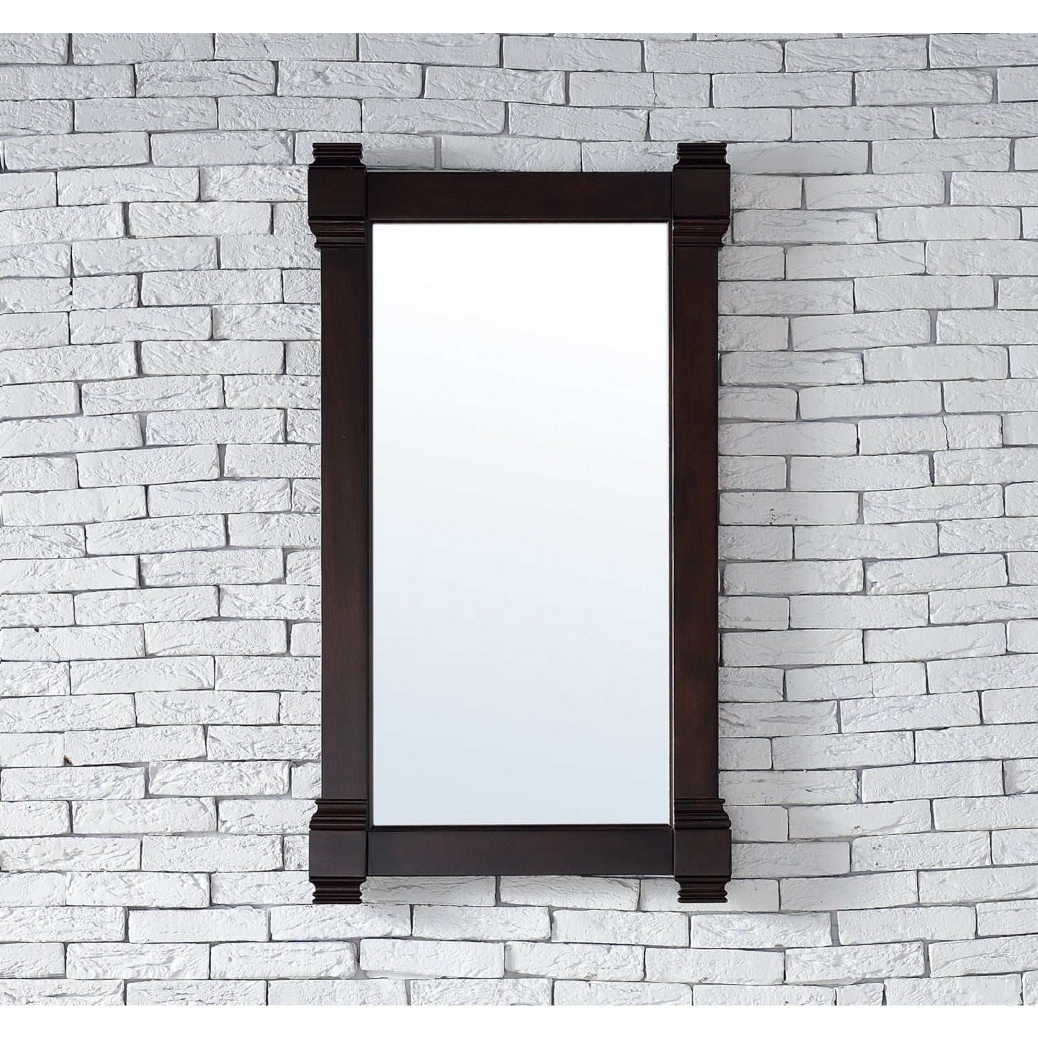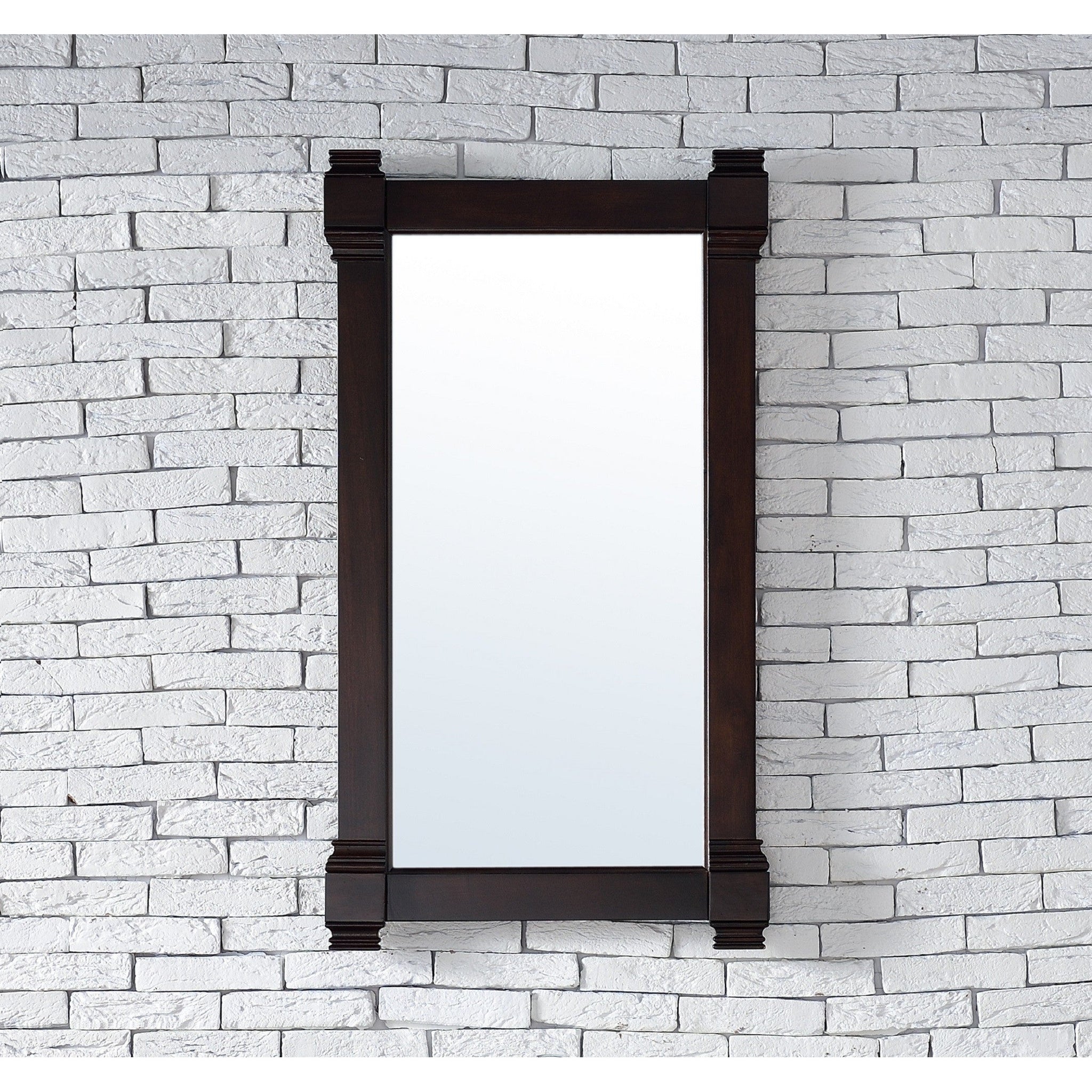 Decorate your bathroom area with this Brittany 22-inch mirror by James Martin Vanities. Featuring a poplar wood frame construction with a black onyx finish and a beveled design on the edges, this mirror complements your traditional or transitional decor delightfully. The sleek design allows you to create an elegant space for getting ready every morning, with a clear view of your makeup and outfit. This mirror comes with a keyhole style bracket for easy hanging in your bathroom or bedroom.