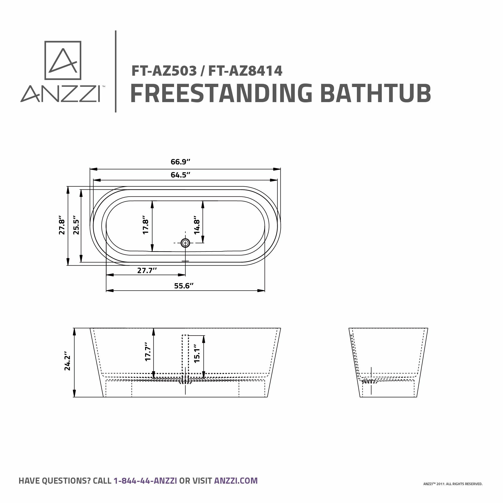 Bring an oasis home with our ANZZI Kosima Solid Surface freestanding soaking bathtub. Ergonomically oval designed to cradle the body's form for maximum comfort this tub is styled with a classic and contemporary flair. Relax and drift away while submerged in your personal spa pool.