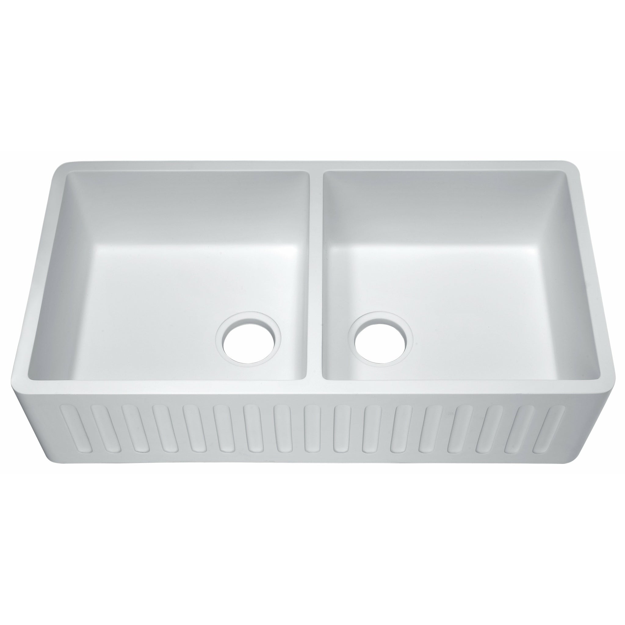 Roine Farmhouse Reversible Apron Front Solid Surface 35 in. Double Basin Kitchen Sink in White