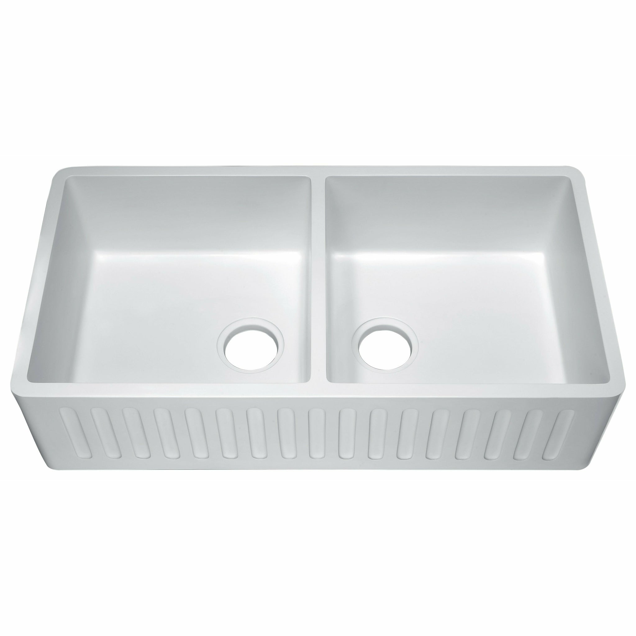 Roine Farmhouse Reversible Glossy Solid Surface 35 in. Double Basin Kitchen Sink in White