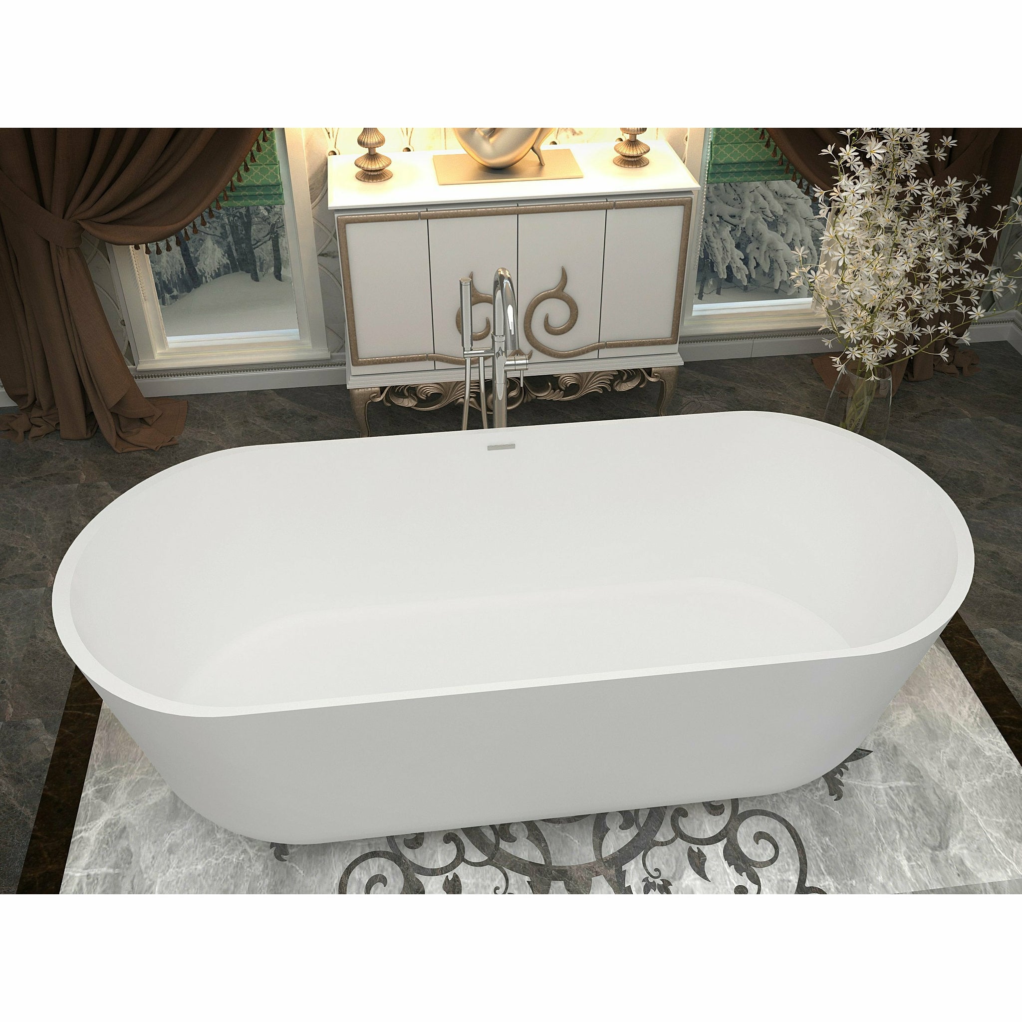 Sabbia 5.9 ft. Solid Surface Center Drain Freestanding Bathtub in Matte White