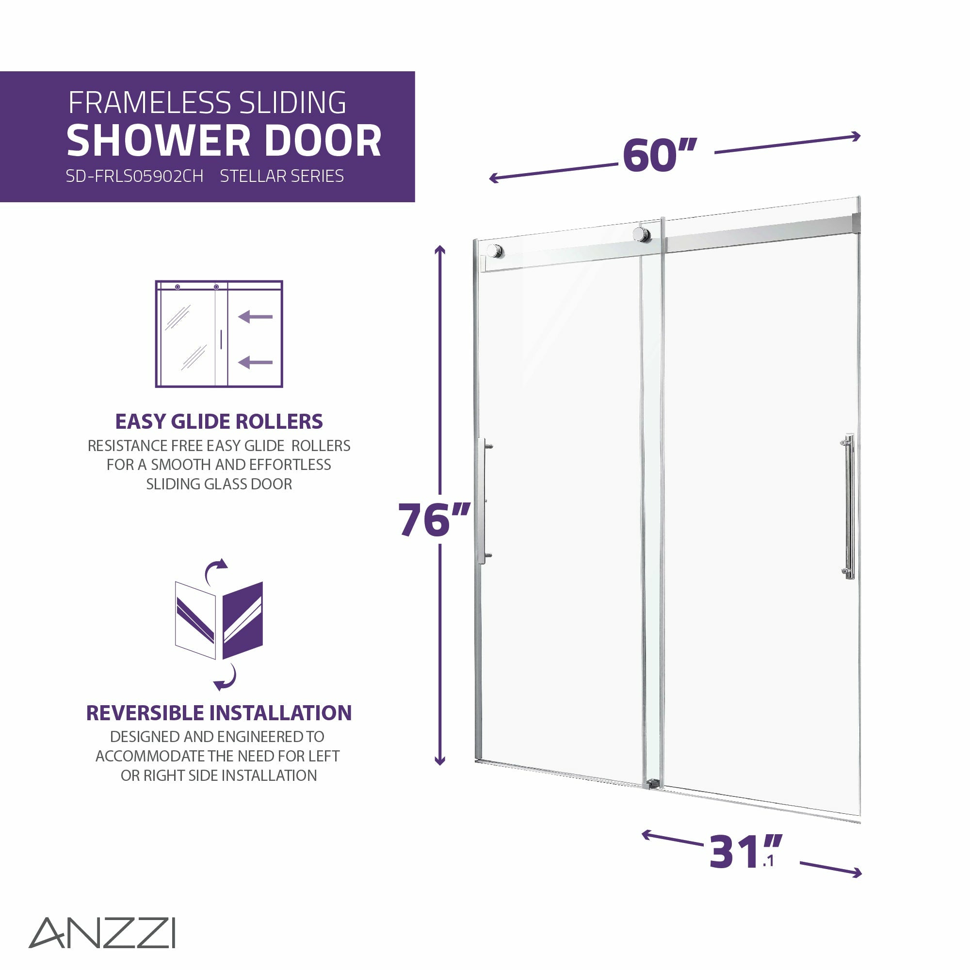 Modernize your shower space with the clean, clutter-free design of a Stellar Series sliding door. We build it with ANSI-certified, tempered Deco-Glass that’s protected by ANZZI's own Tsunami Guard shielding, which repels water so your door stays crystal-clear and free of cloudy build-up. The hardware is crafted from Rhino Alloy-certified stainless steel and aluminum, then finished in Chrome, giving it the versatility to work with any bathroom’s decor. The contemporary frameless design uses stainless steel rollers to create a free-floating sliding action, so the door opens and closes easily every time.