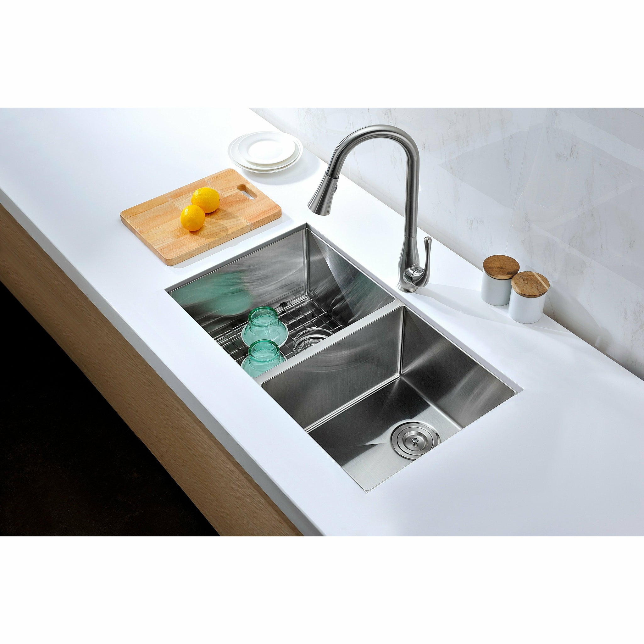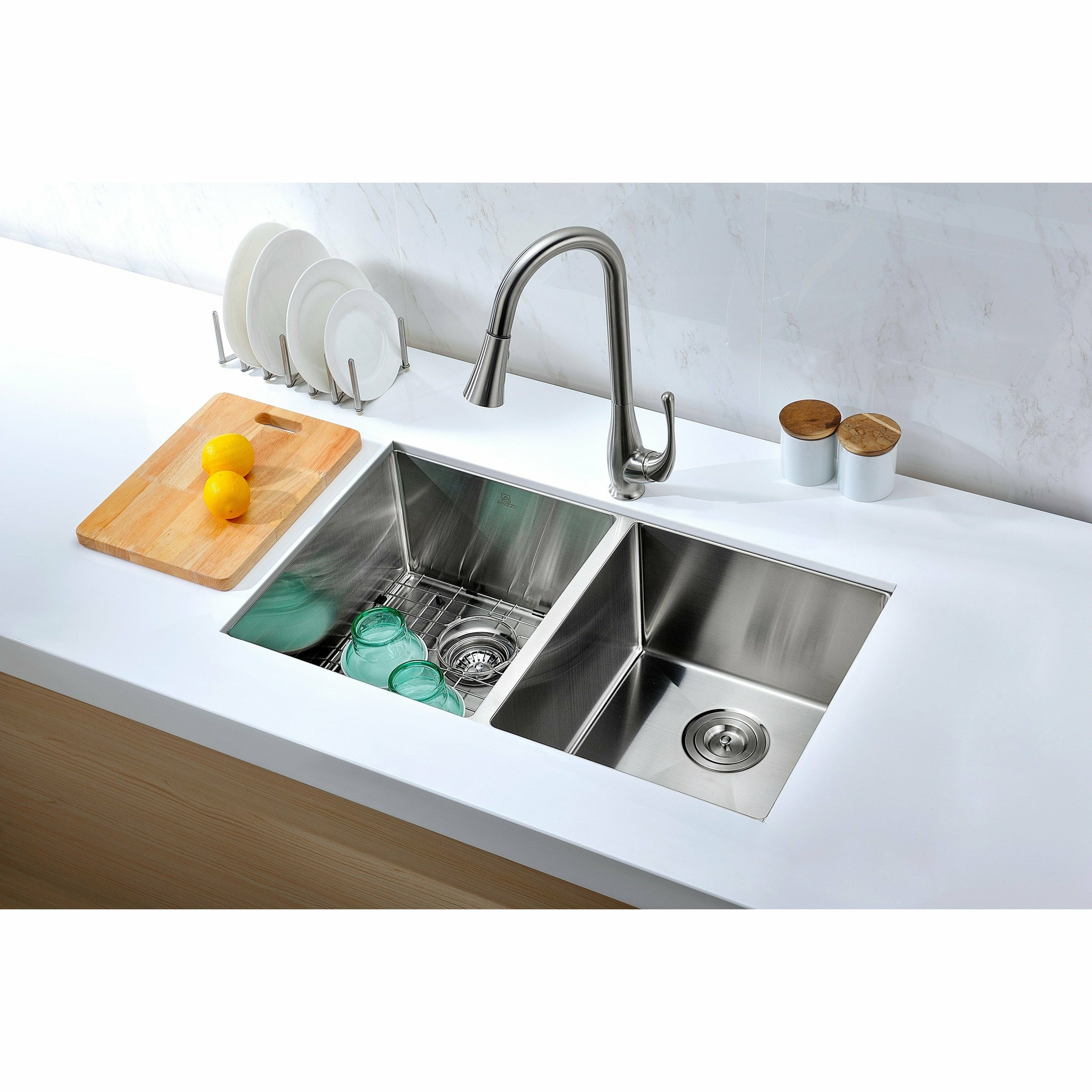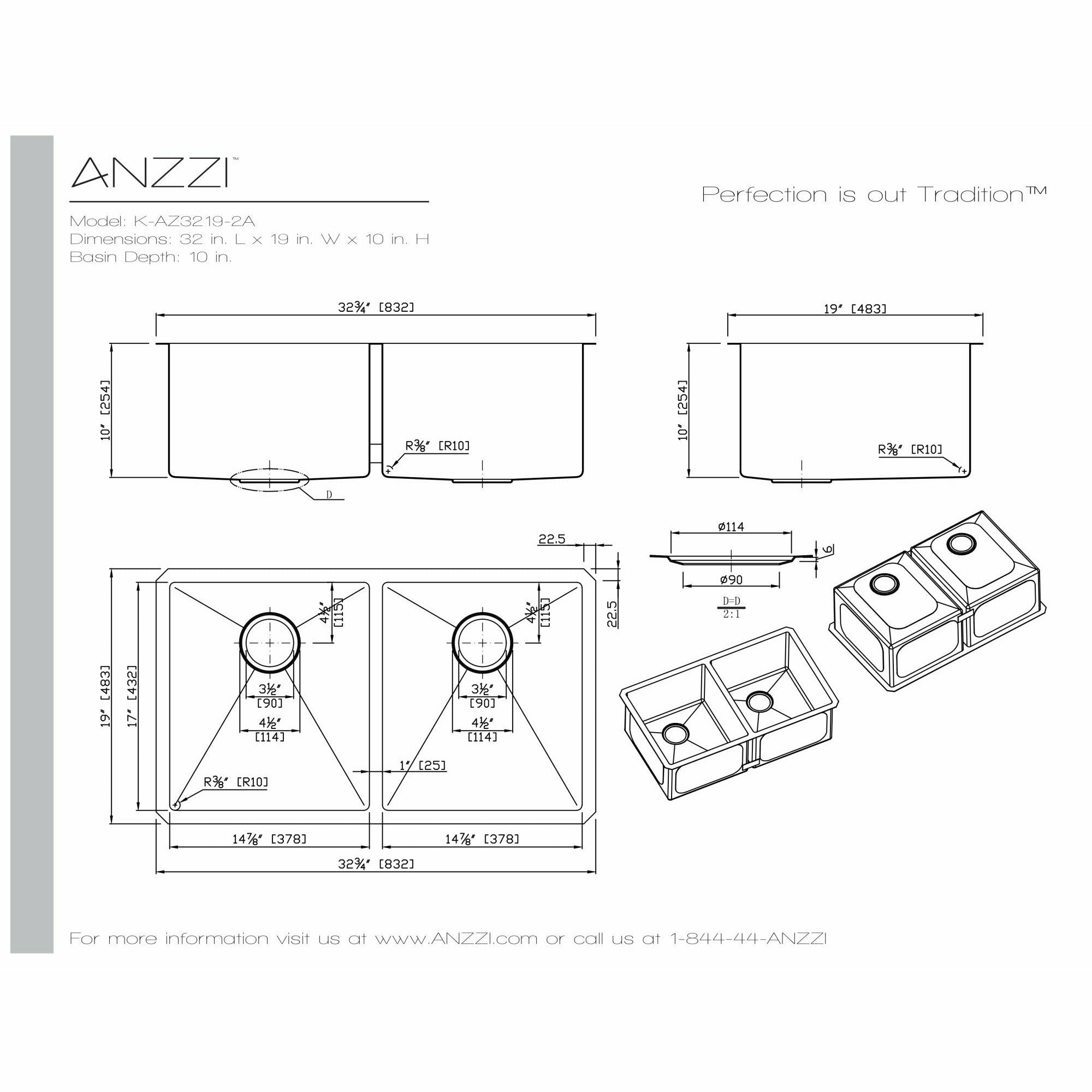 ANZZI presents the 32 inch VANGUARD SERIES hand crafted under mount kitchen sink. Representing the latest in modern home fixture designs and traditional European crafting technique this stunning display of artistry is hand shaped to perfection using RHINO ALLOY certified 16 gauge 304 stainless steel. Only ANZZI hand crafted kitchen sinks utilize RHINO ALLOY certified materials for superior strength and quality. The cavernous 50/50 deep soaking dual basin will comfortably accommodate the largest dish loads including pots, pans and more. And every ANZZI sink features the largest Echo-STOP sound dampening pads available and a layer of protective composite coating to further quiet noise and prevent condensation. Well defined diversion lines ensure quick and total water drainage and the subtly curved corners allow of easier cleaning. ANZZI carries a proud tradition of crafting long lasting, quality home fixtures. With ANZZI perfection is our tradition.