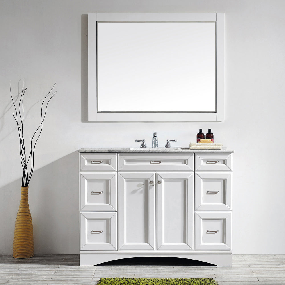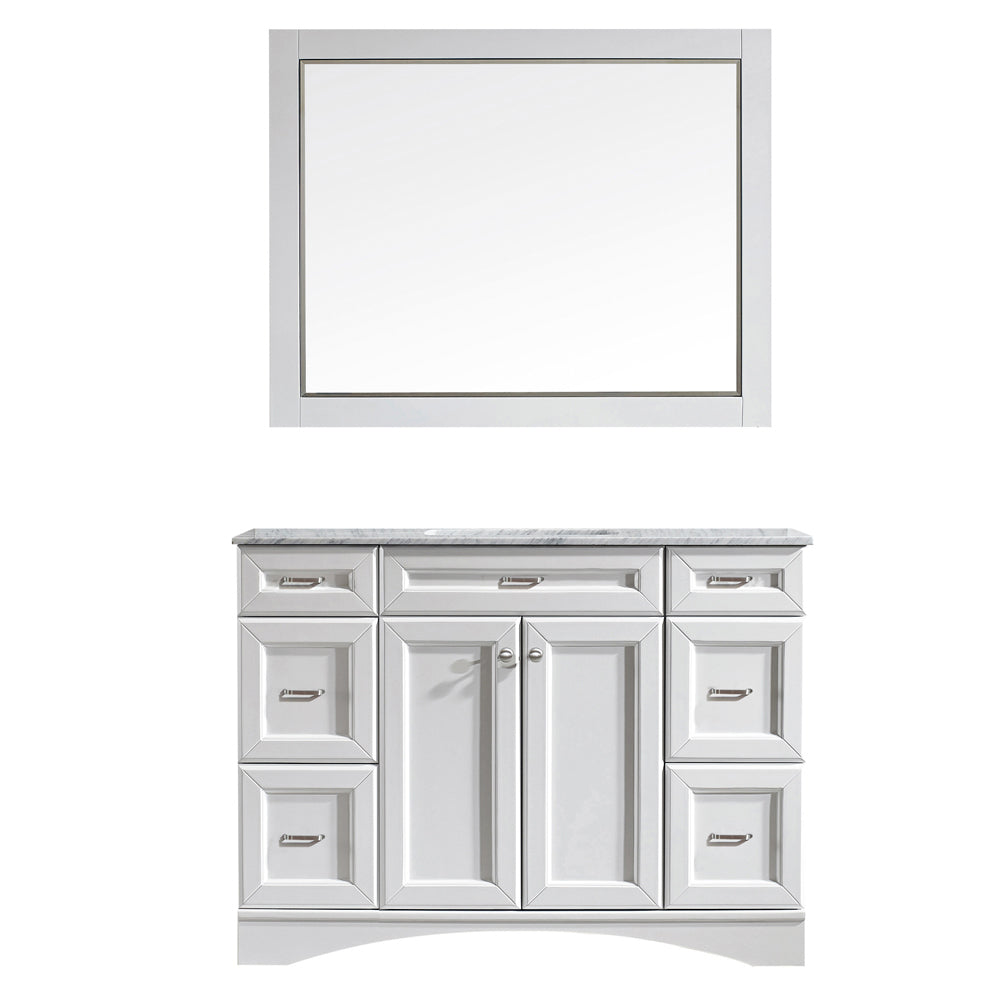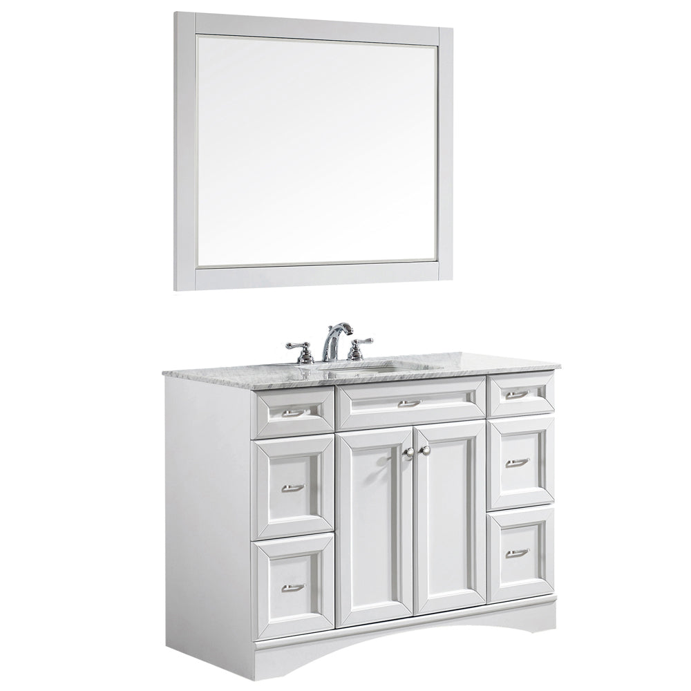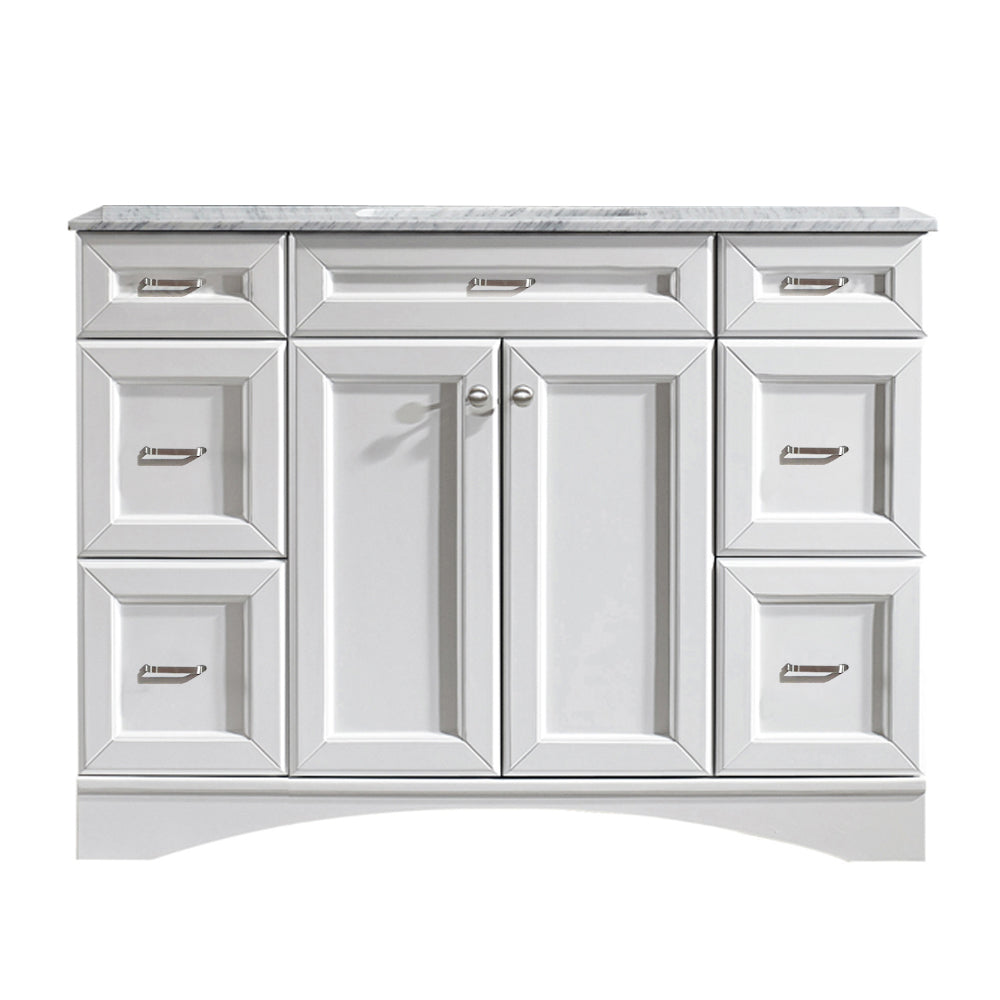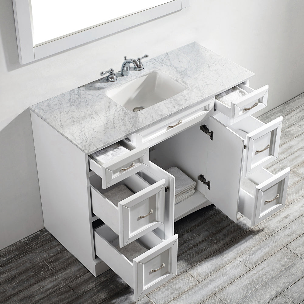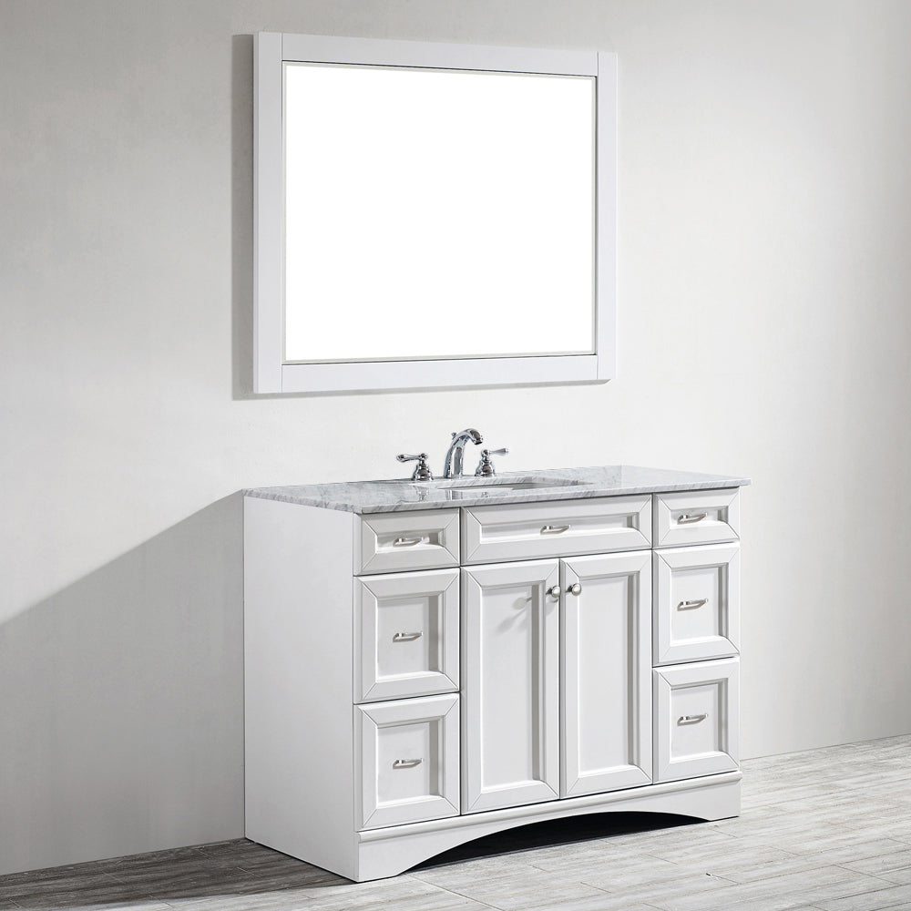 Vinnova Naples 48" Vanity in White with Carrara White Marble Countertop Without Mirror