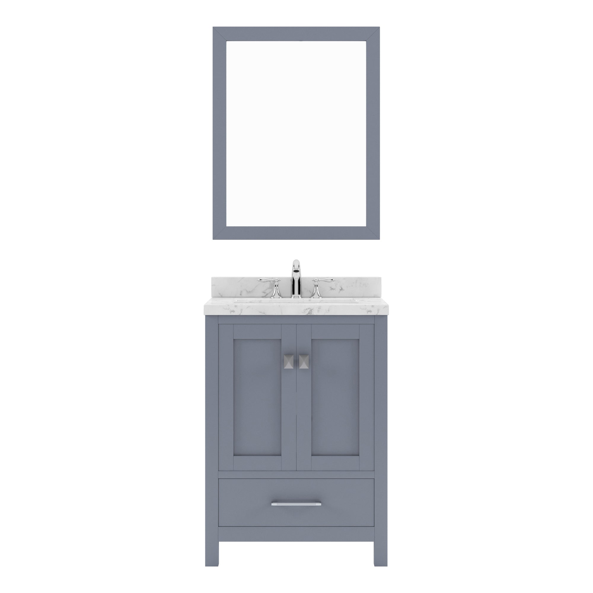 Virtu USA Caroline Avenue 24" Single Bath Vanity in Gray with White Quartz Top and Round Sink with Matching Mirror