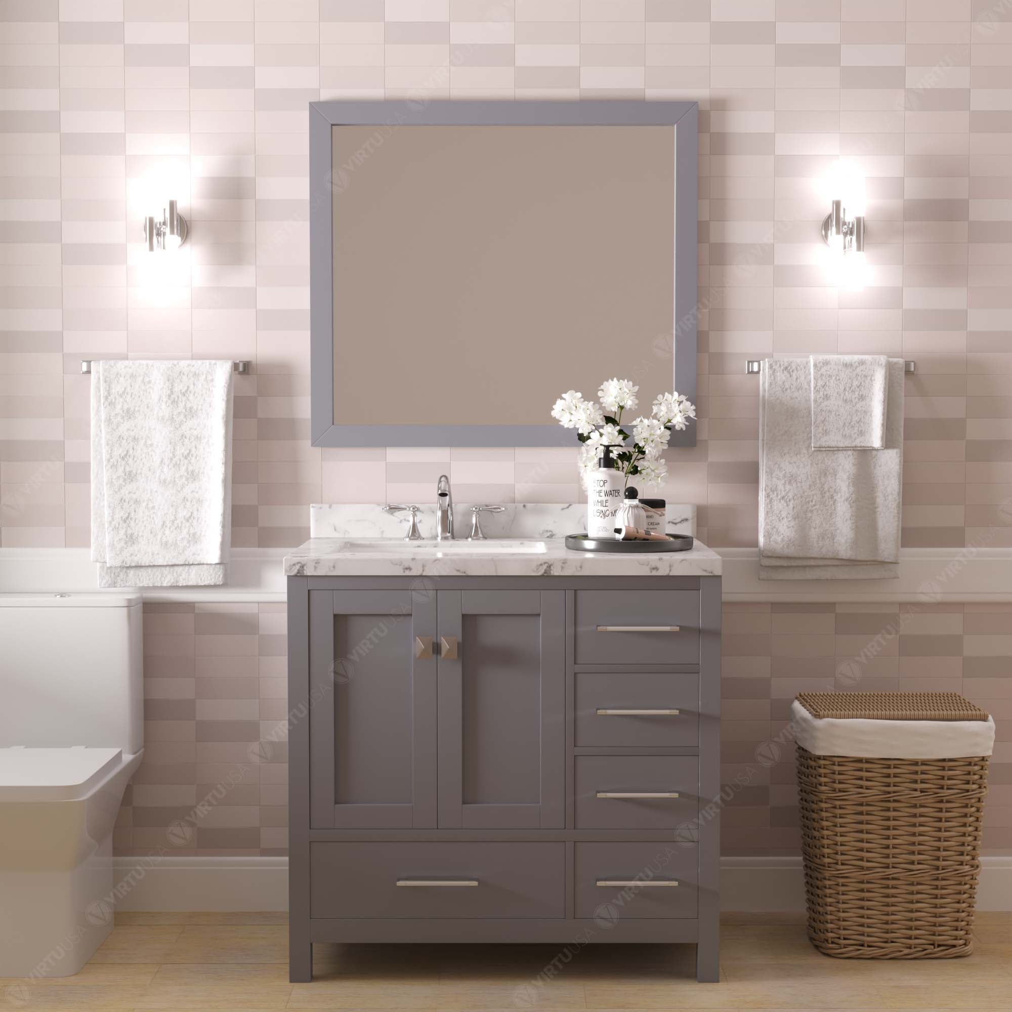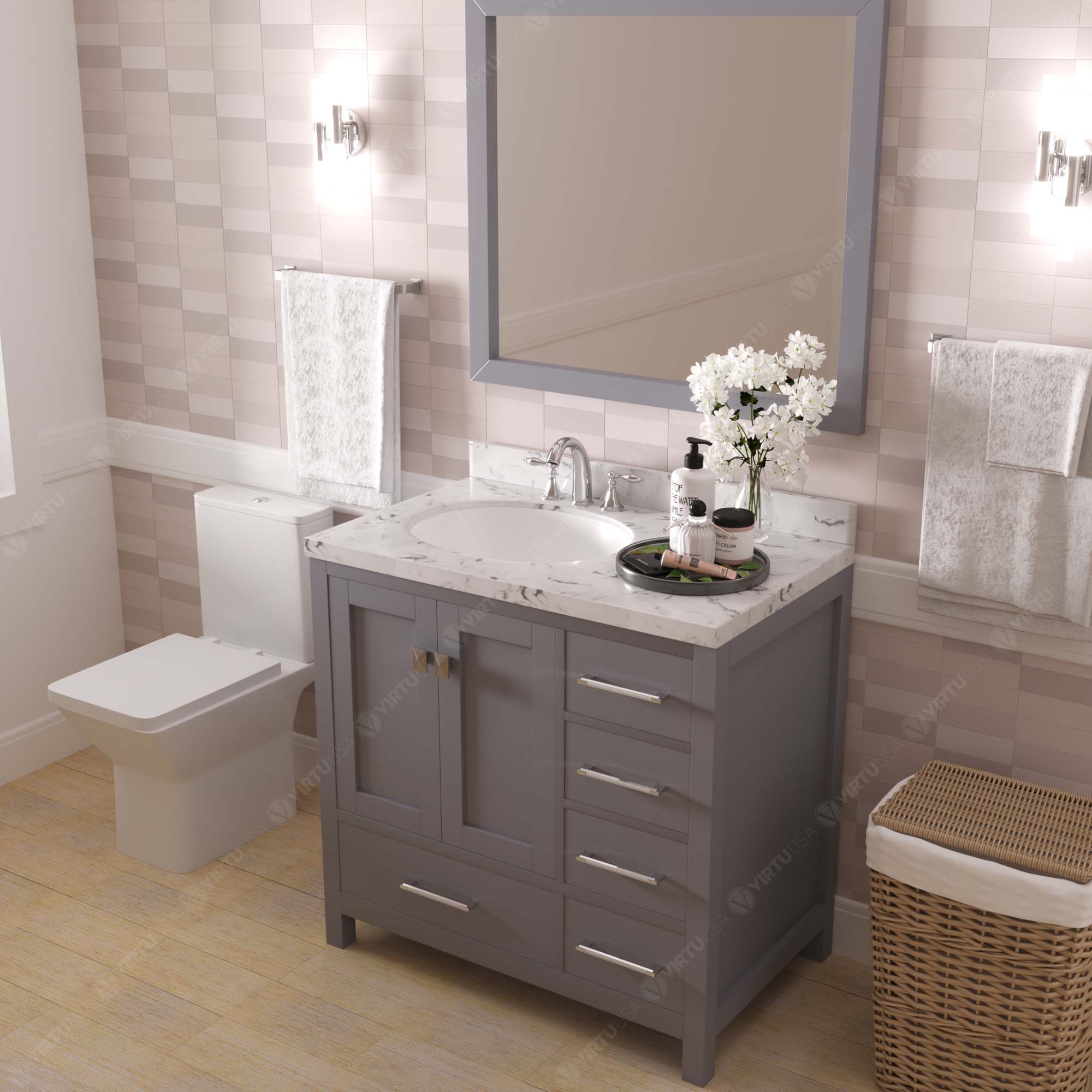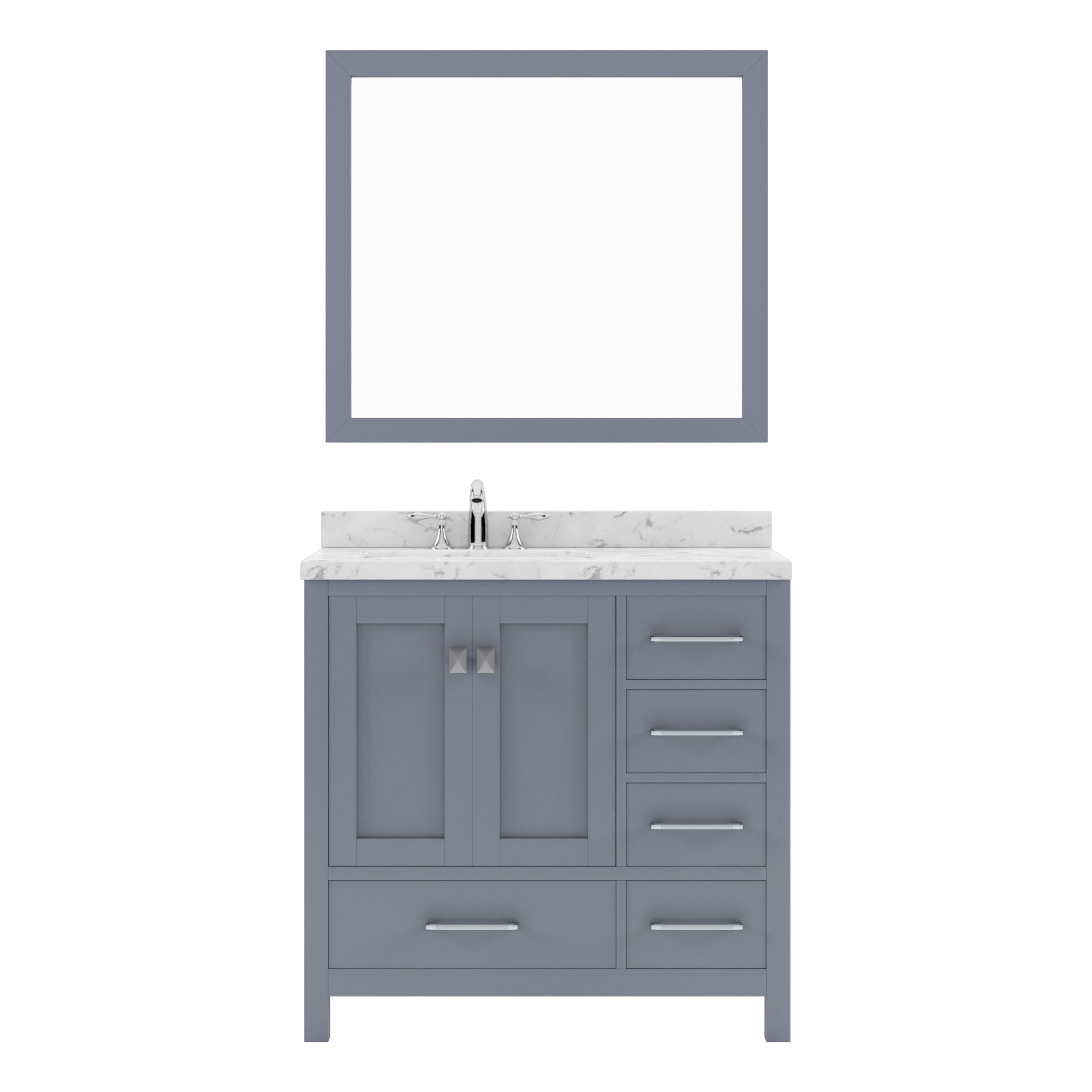 Virtu USA Caroline Avenue 36" Single Bath Vanity in Gray with White Quartz Top and Round Sink with Matching Mirror