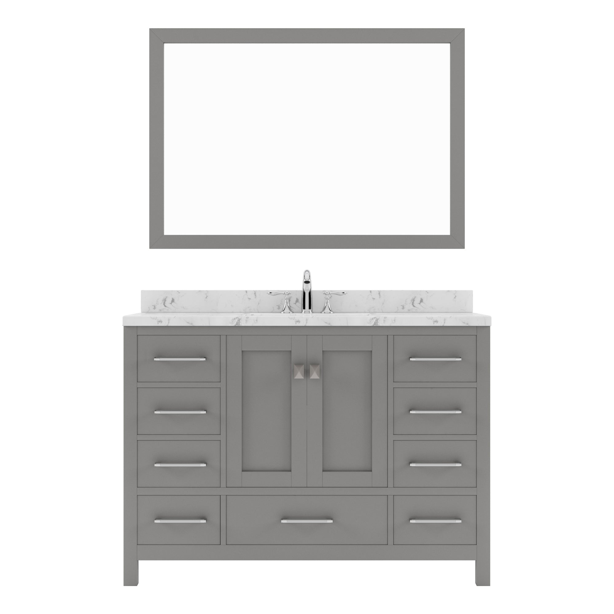 Virtu USA Caroline Avenue 48" Single Bath Vanity in Cashmere Gray with White Quartz Top and Square Sink with Matching Mirror