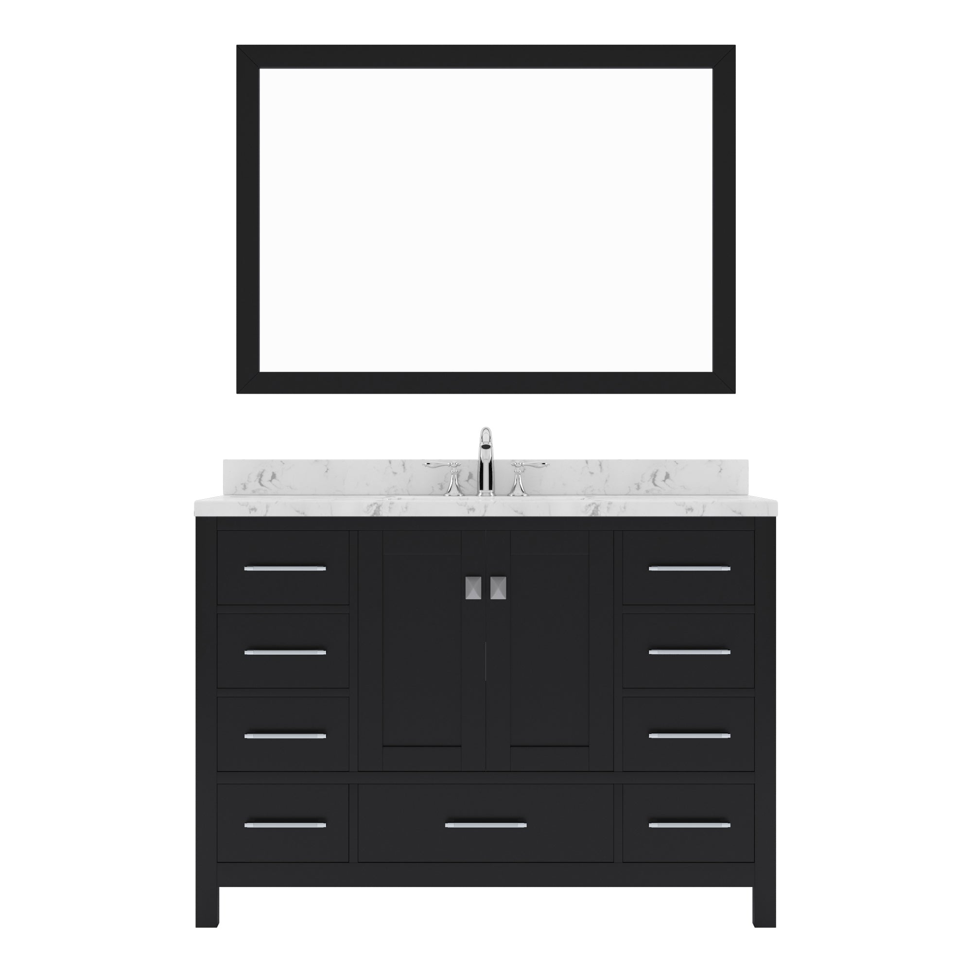 Virtu USA Caroline Avenue 48" Single Bath Vanity in Espresso with White Quartz Top and Round Sink with Brushed Nickel Faucet with Matching Mirror