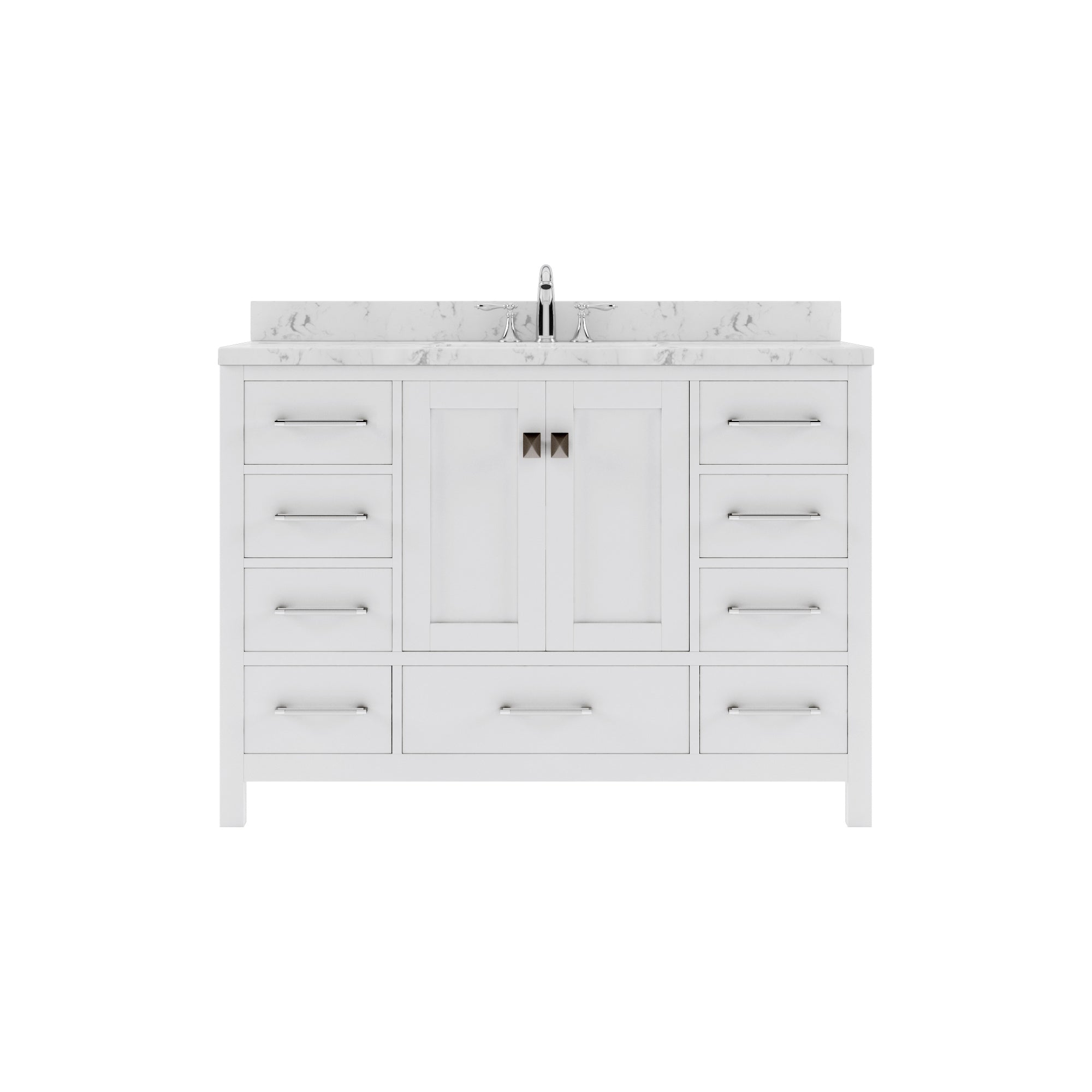 Virtu USA Caroline Avenue 48" Single Bath Vanity in White with White Quartz Top and Round Sink
