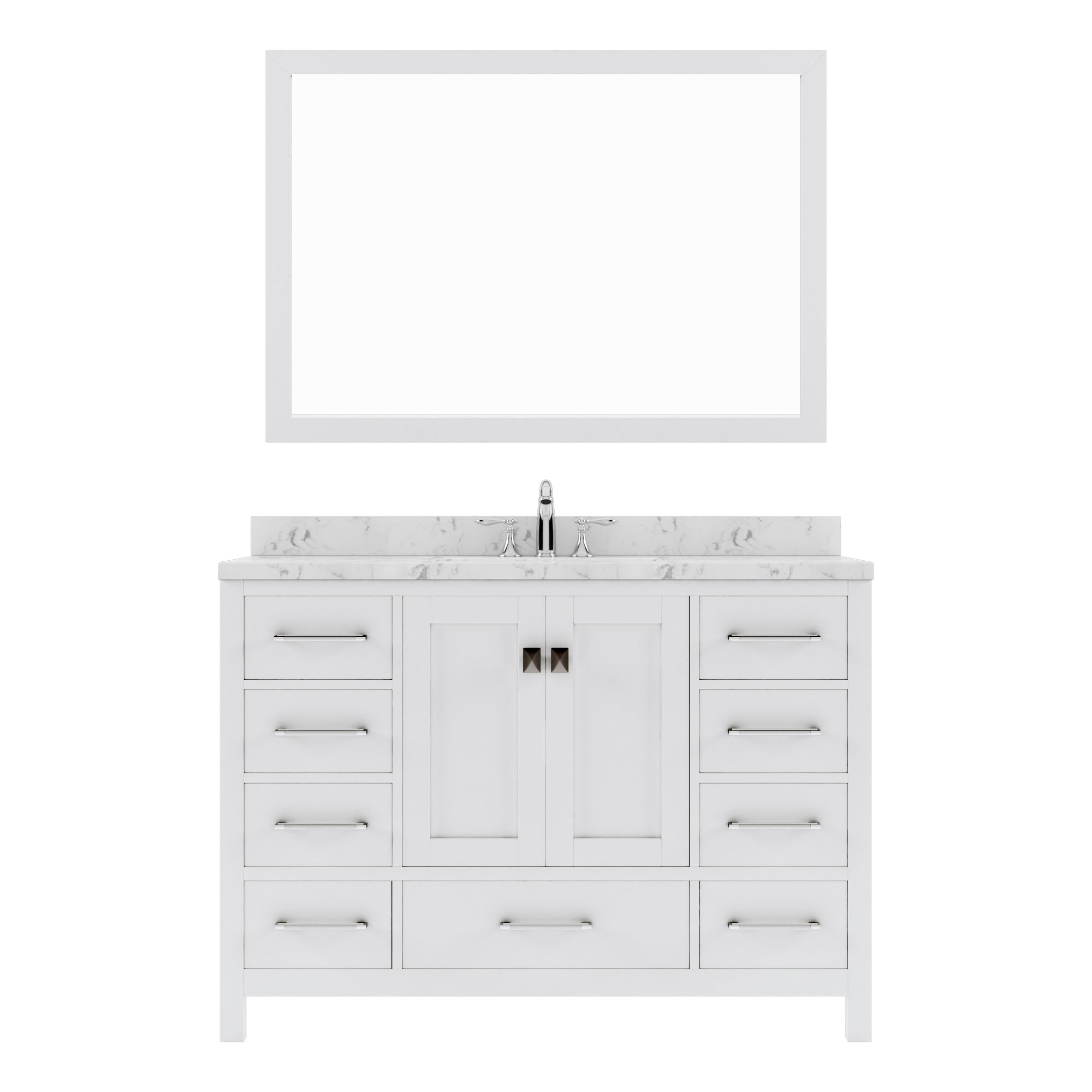Includes - 48" White Cabinet, Cultured Marble Quartz Countertop, 1 Square Undermount Sink, 1 Framed Mirror