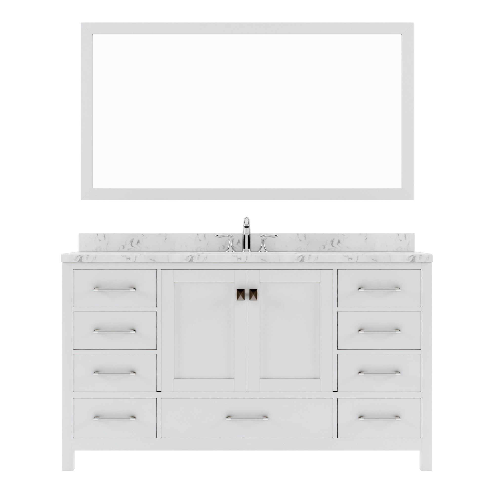 Virtu USA Caroline Avenue 60" Double Bath Vanity in White with White Quartz Top and Round Sinks with Matching Mirror