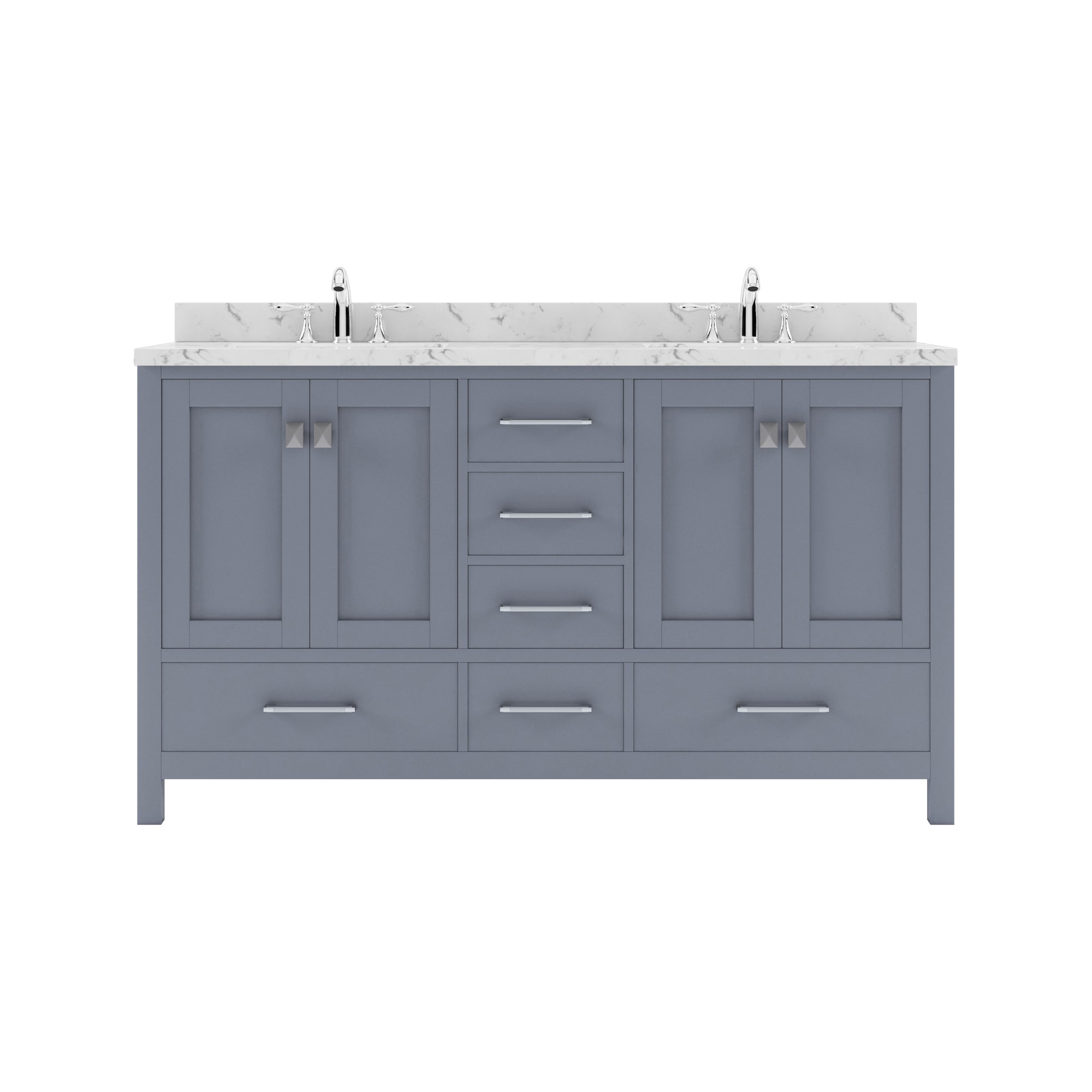 Virtu USA Caroline Avenue 60" Single Bath Vanity in Gray with White Quartz Top and Round Sink