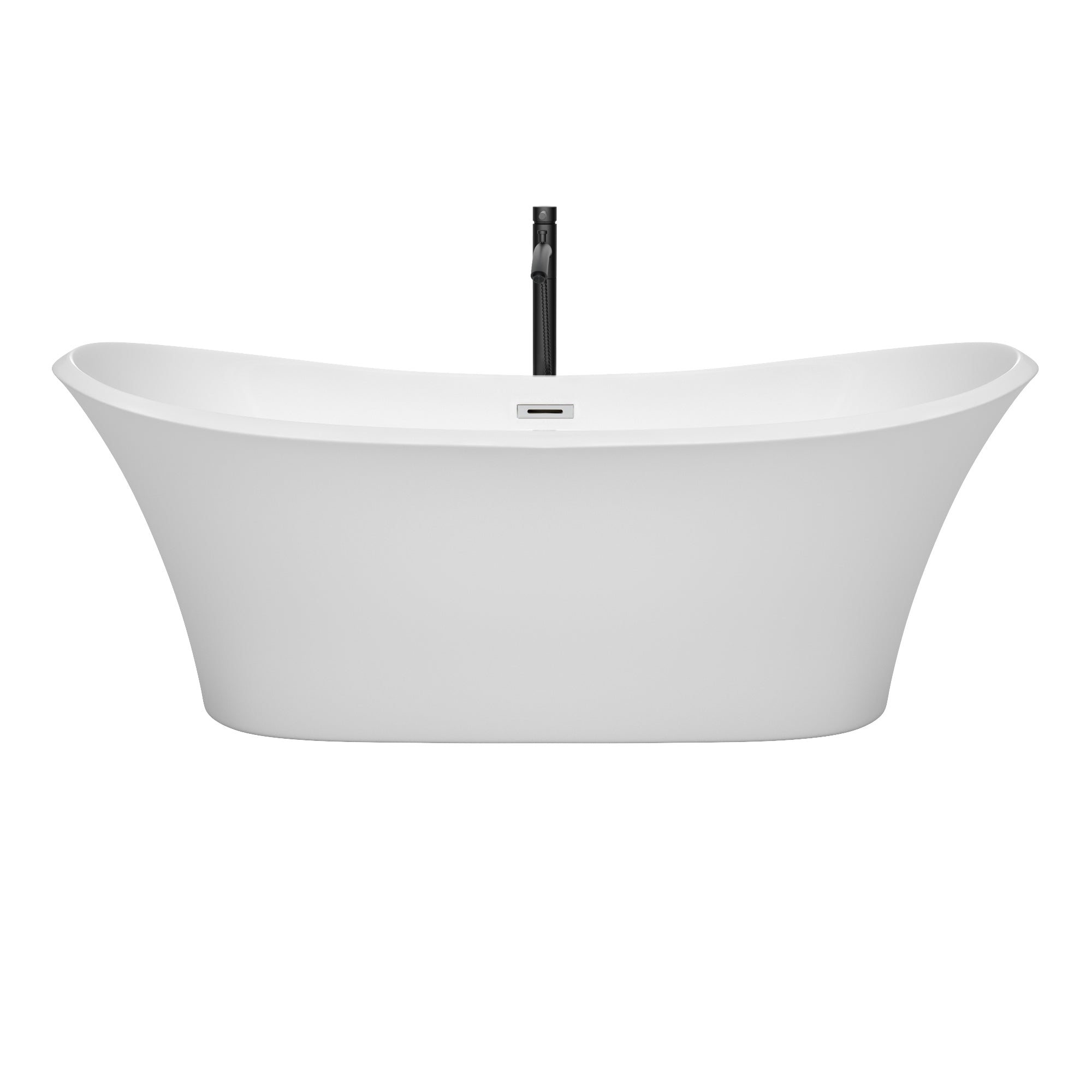 Wyndham Bolera 71 Inch Freestanding Bathtub in White with Polished Chrome Trim and Floor Mounted Faucet in Matte Black