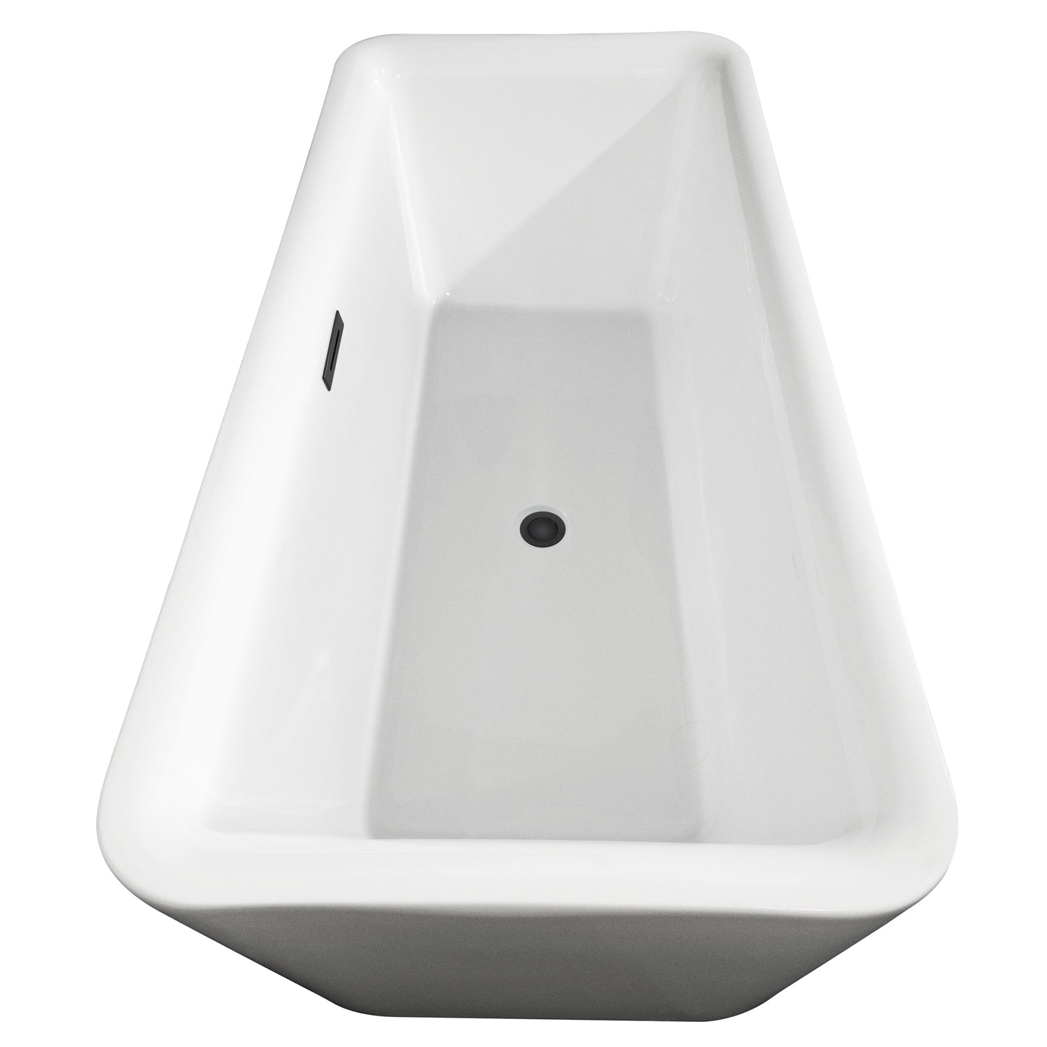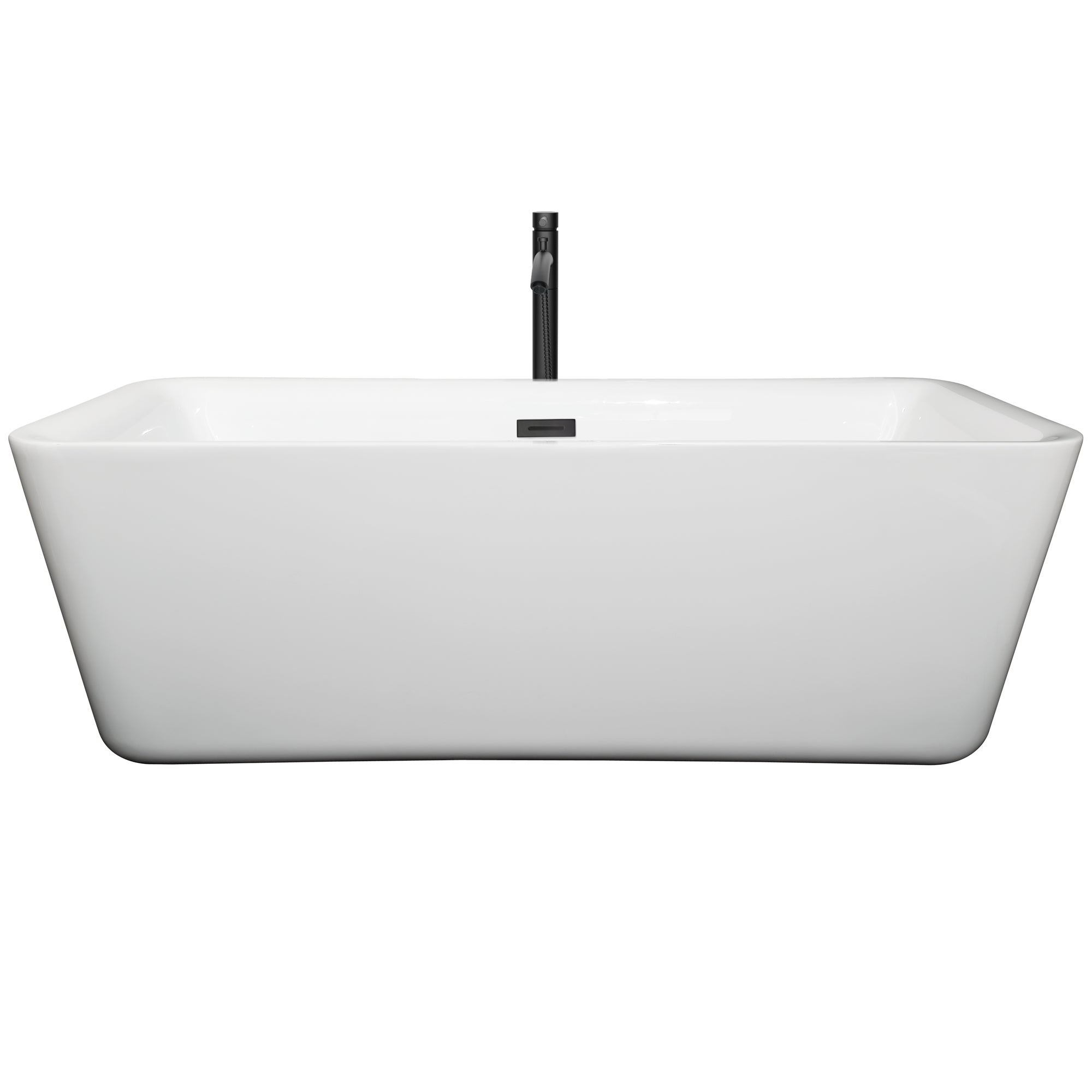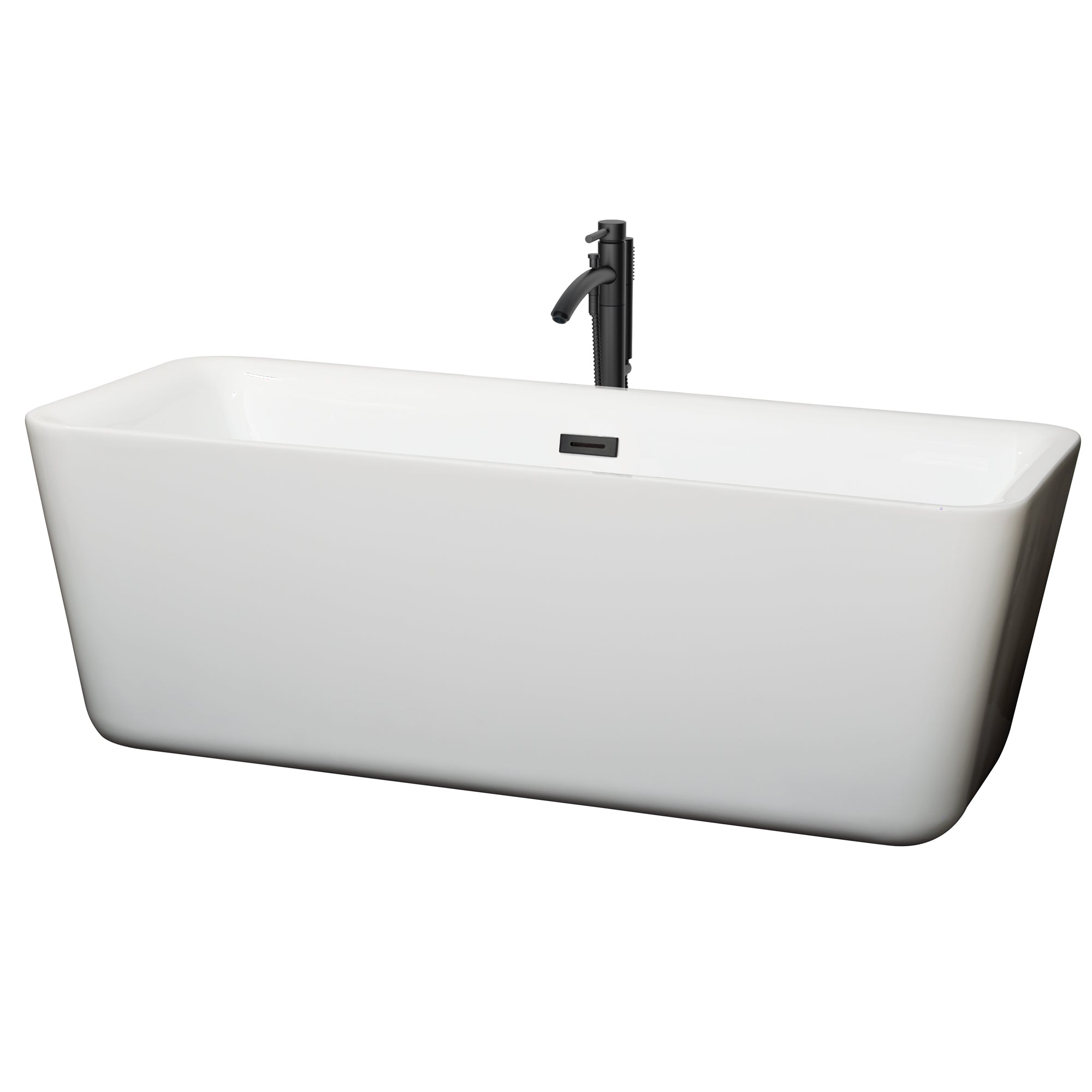 Wyndham Emily 69 Inch Freestanding Bathtub in White with Floor Mounted Faucet, Drain and Overflow Trim in Matte Black