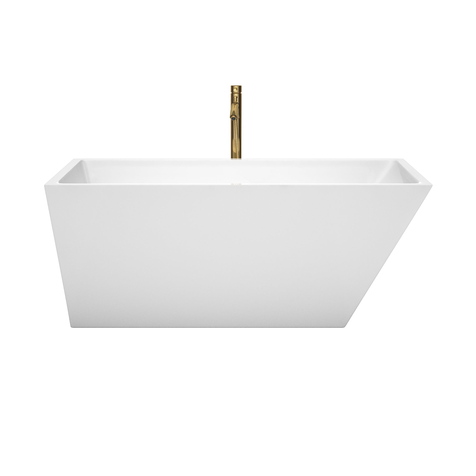 Wyndham Hannah 59 Inch Freestanding Bathtub in White with Shiny White Trim and Floor Mounted Faucet in Brushed Gold